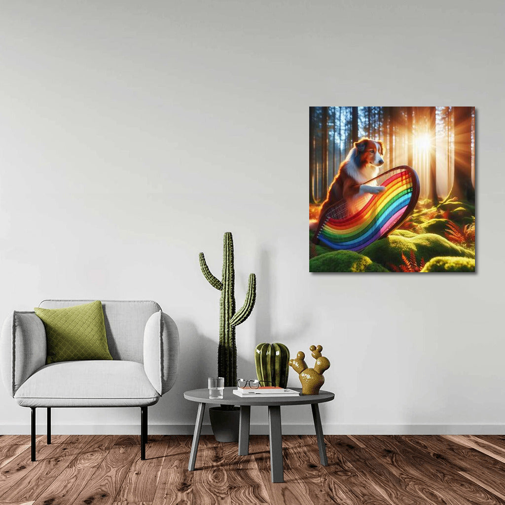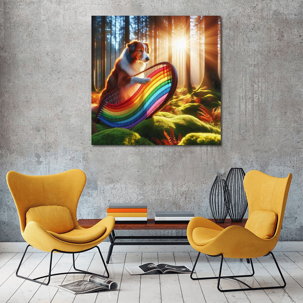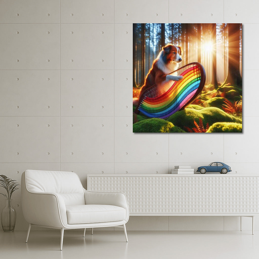 Rainbow Melodies: The Harp Dog Bringing Nature to Life Wall Art