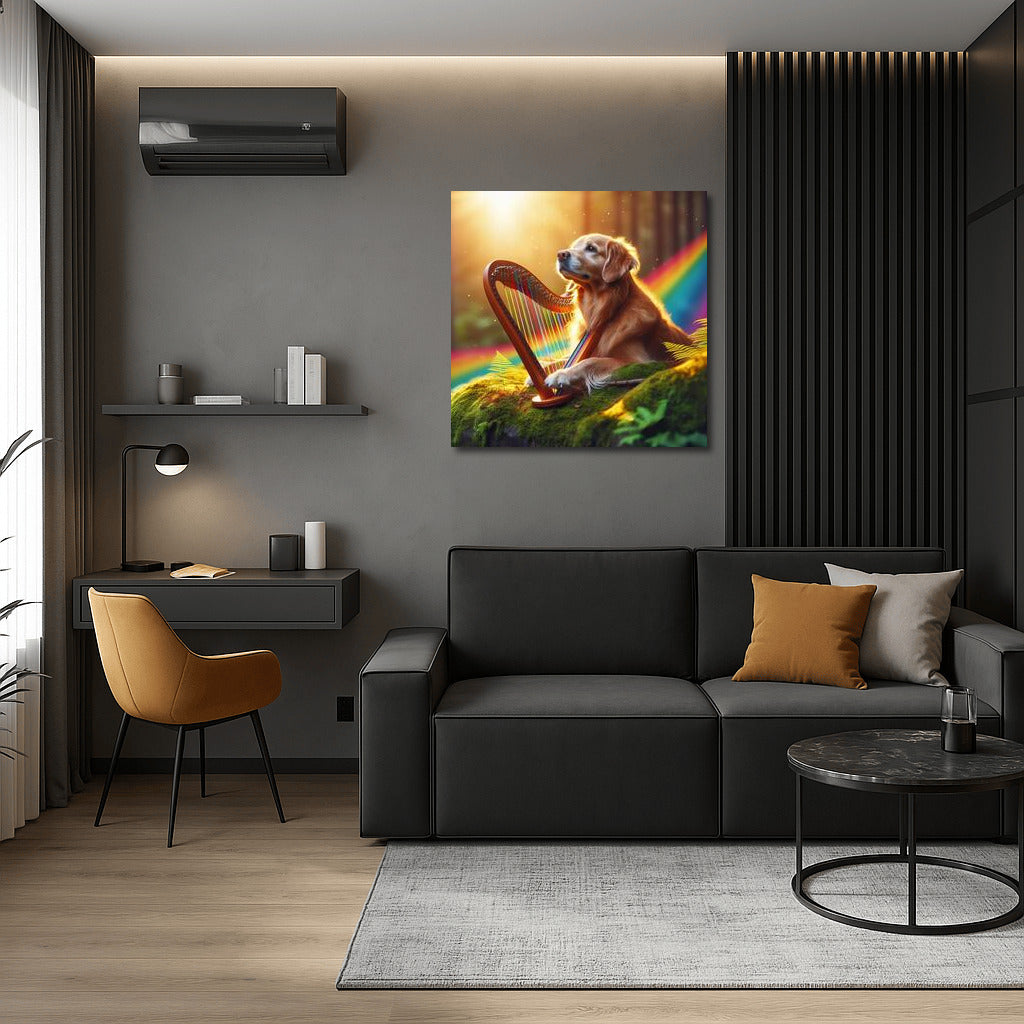 Rainbow Melody: The Harp Dog Bringing Nature to Life Wall Art