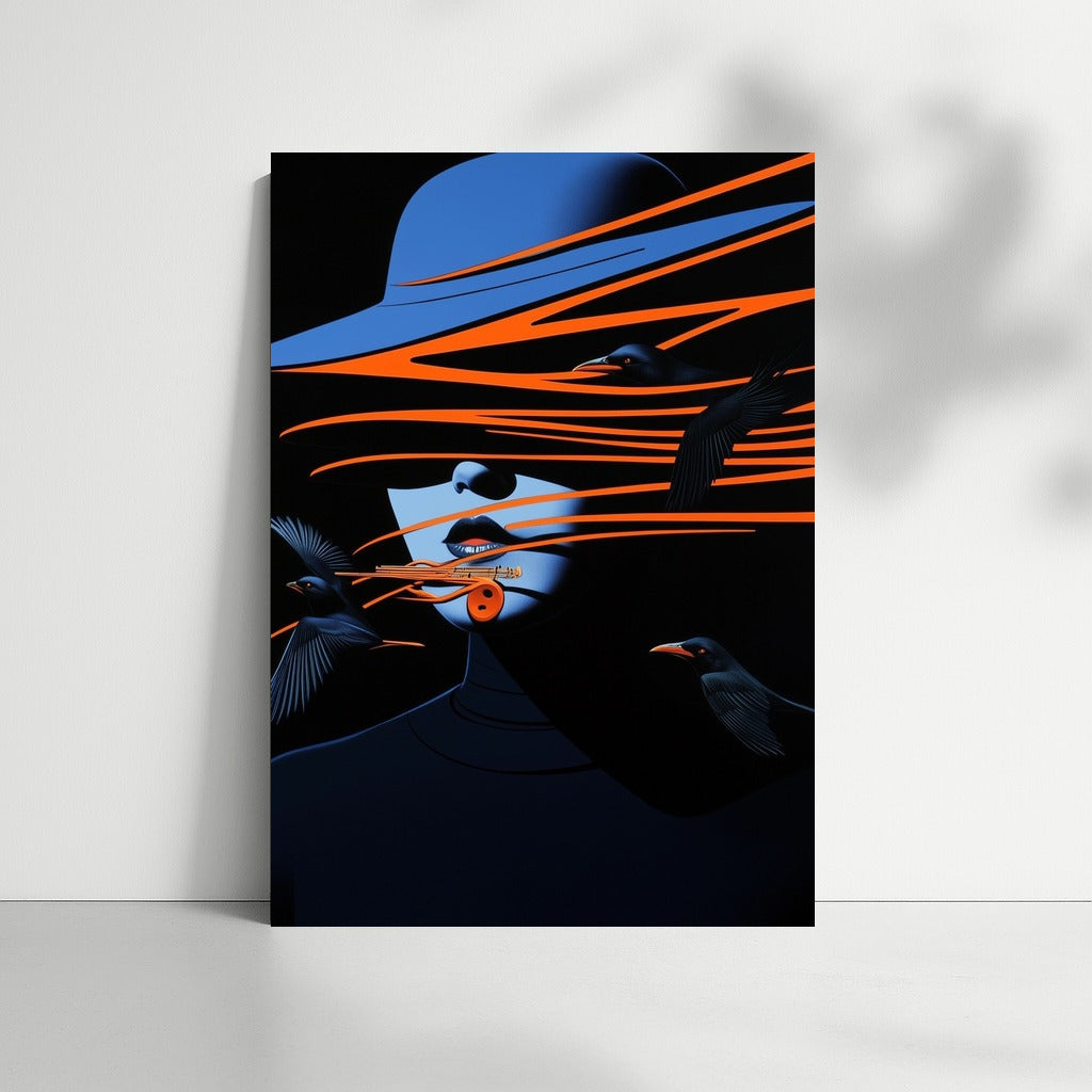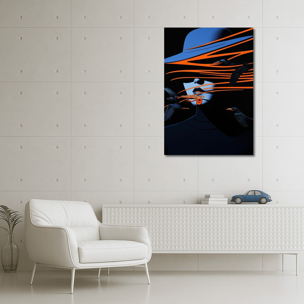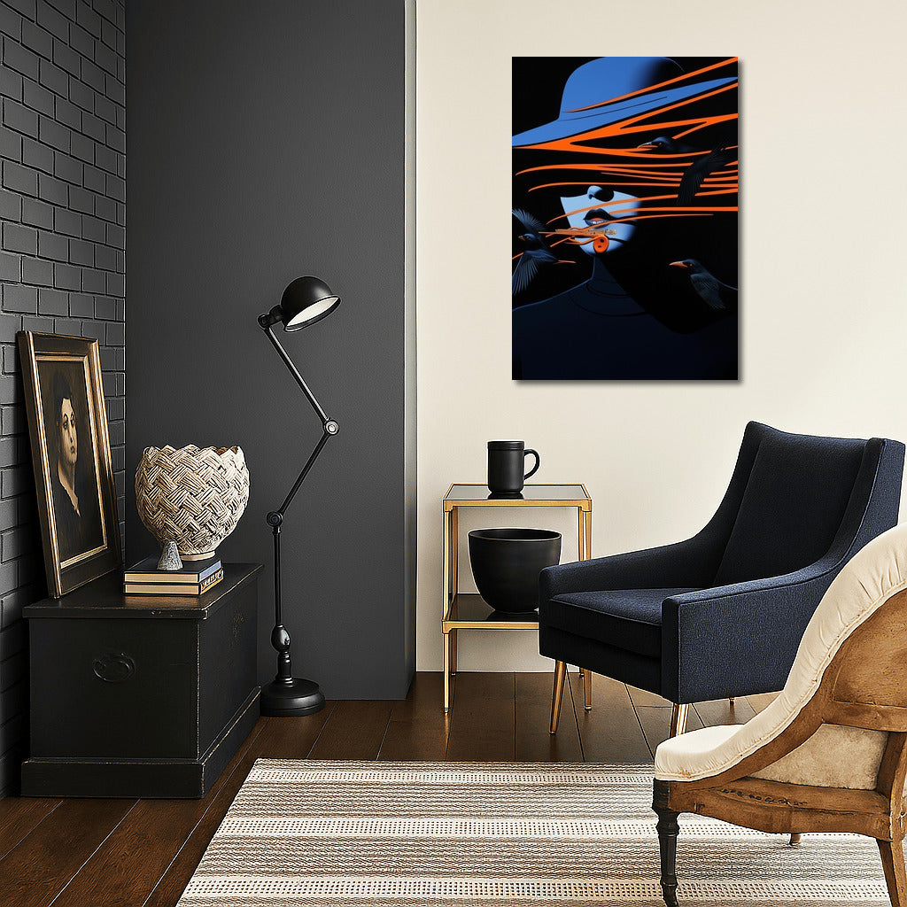 Elegant Enigma: Mysterious Face and Crows Poster. Add stylish wall art to your interior. See more from the collection: Mixed Wall Art