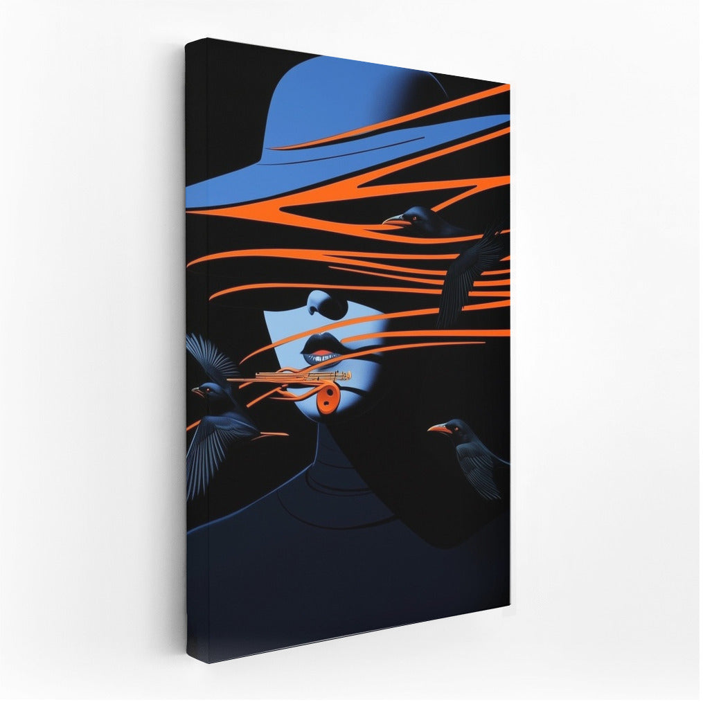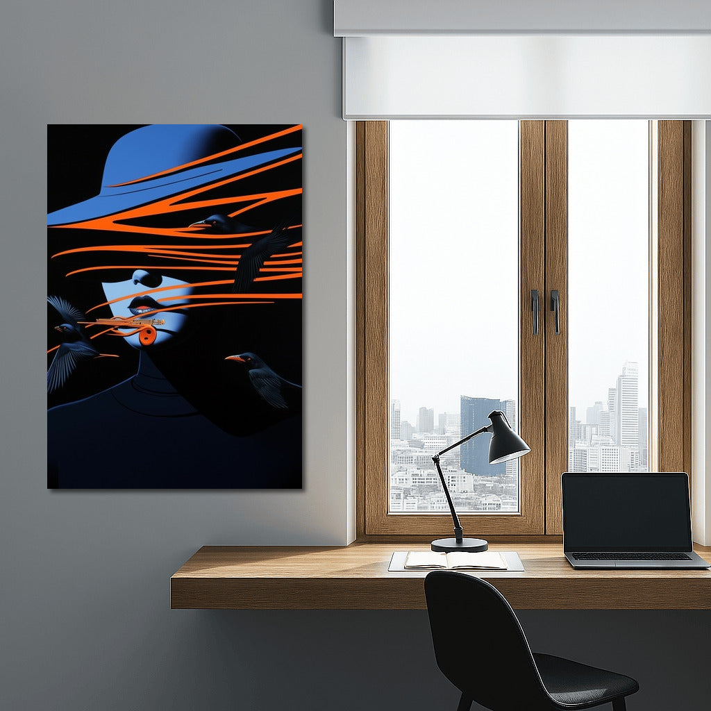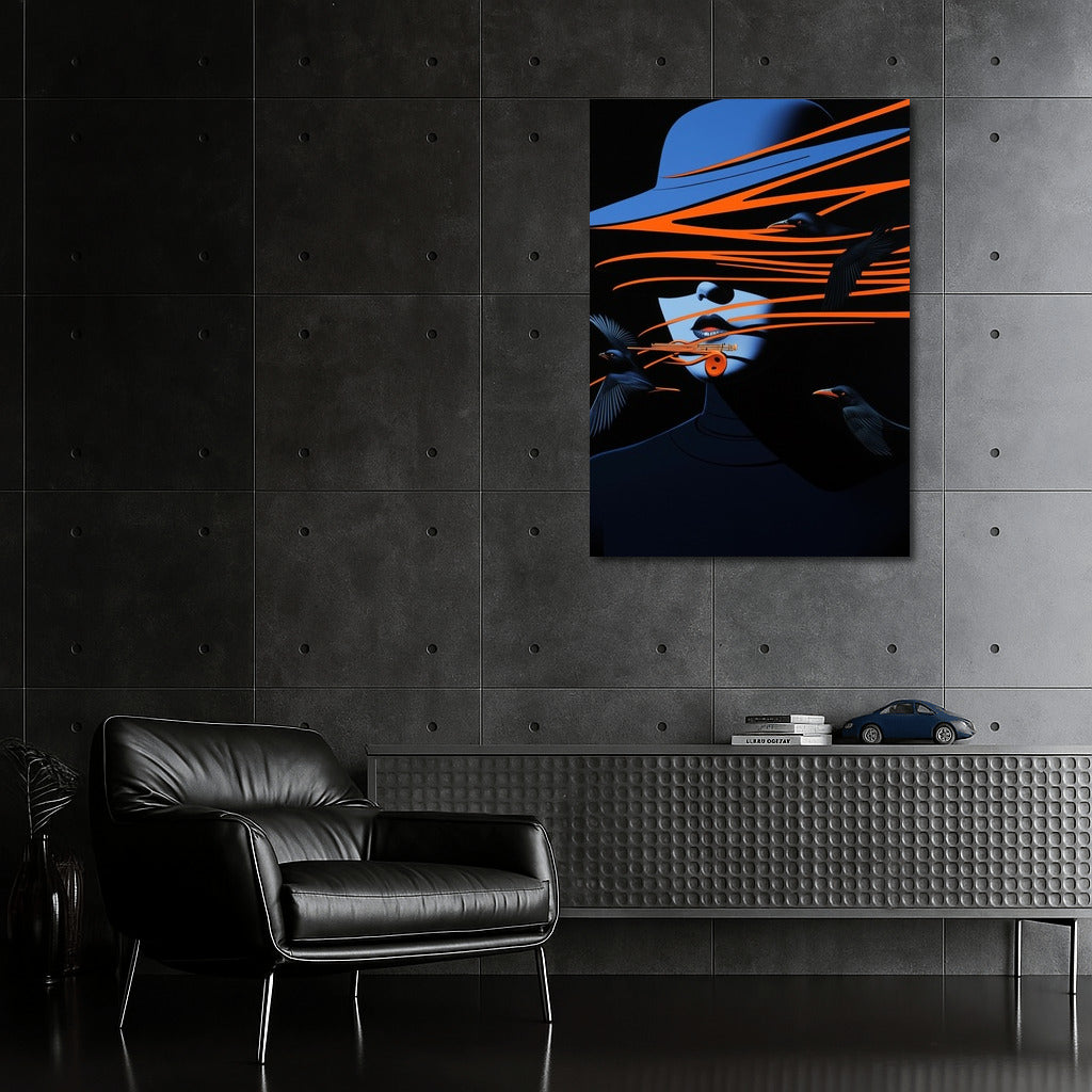 Elegant Enigma: Mysterious Face and Crows Poster. Add stylish wall art to your interior. See more from the collection: Mixed Wall Art