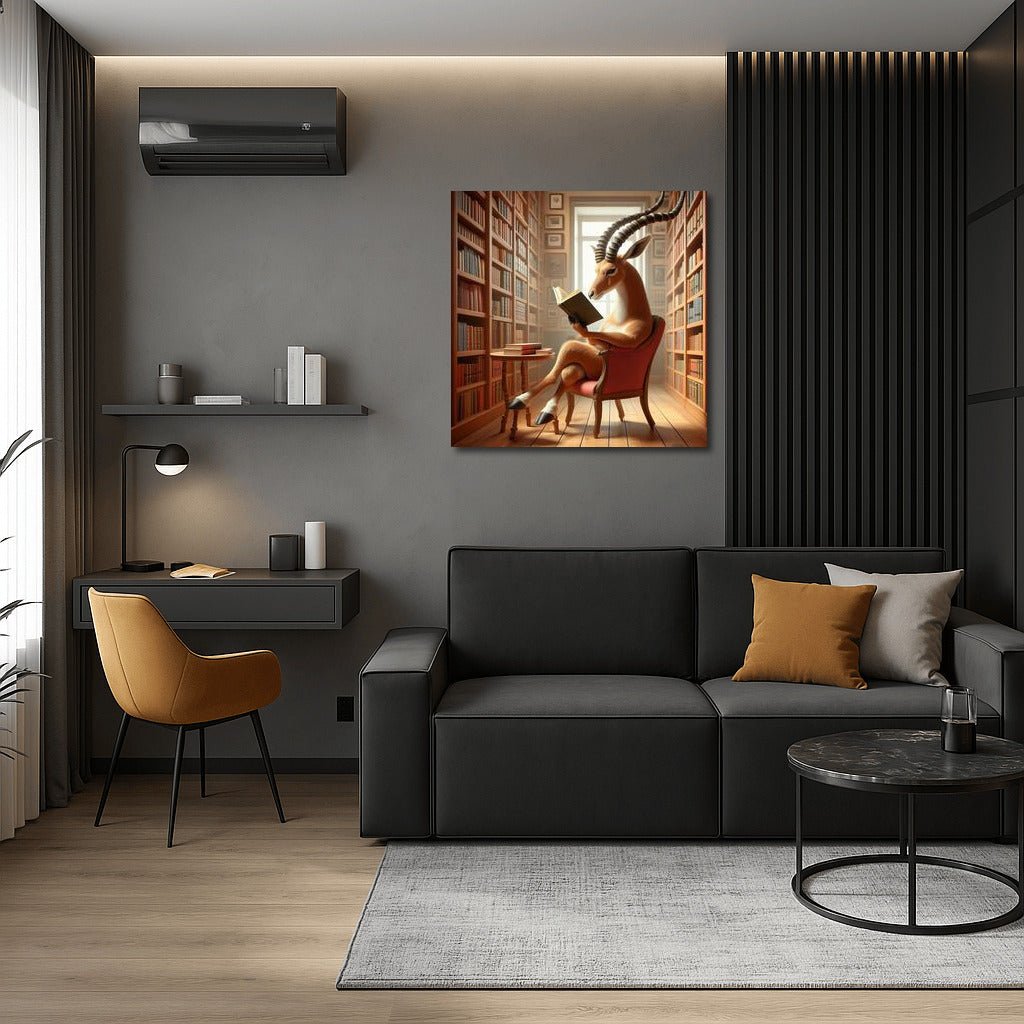 Antelope in the library: a fabulous poster where the grace of nature meets the wisdom of books. Wall art with fantasy! ?? See more from the collection: Animals Art