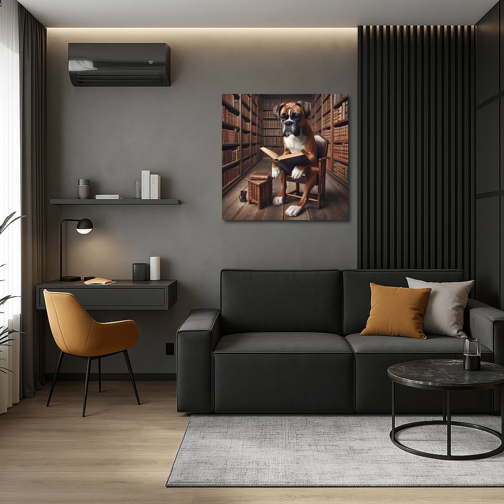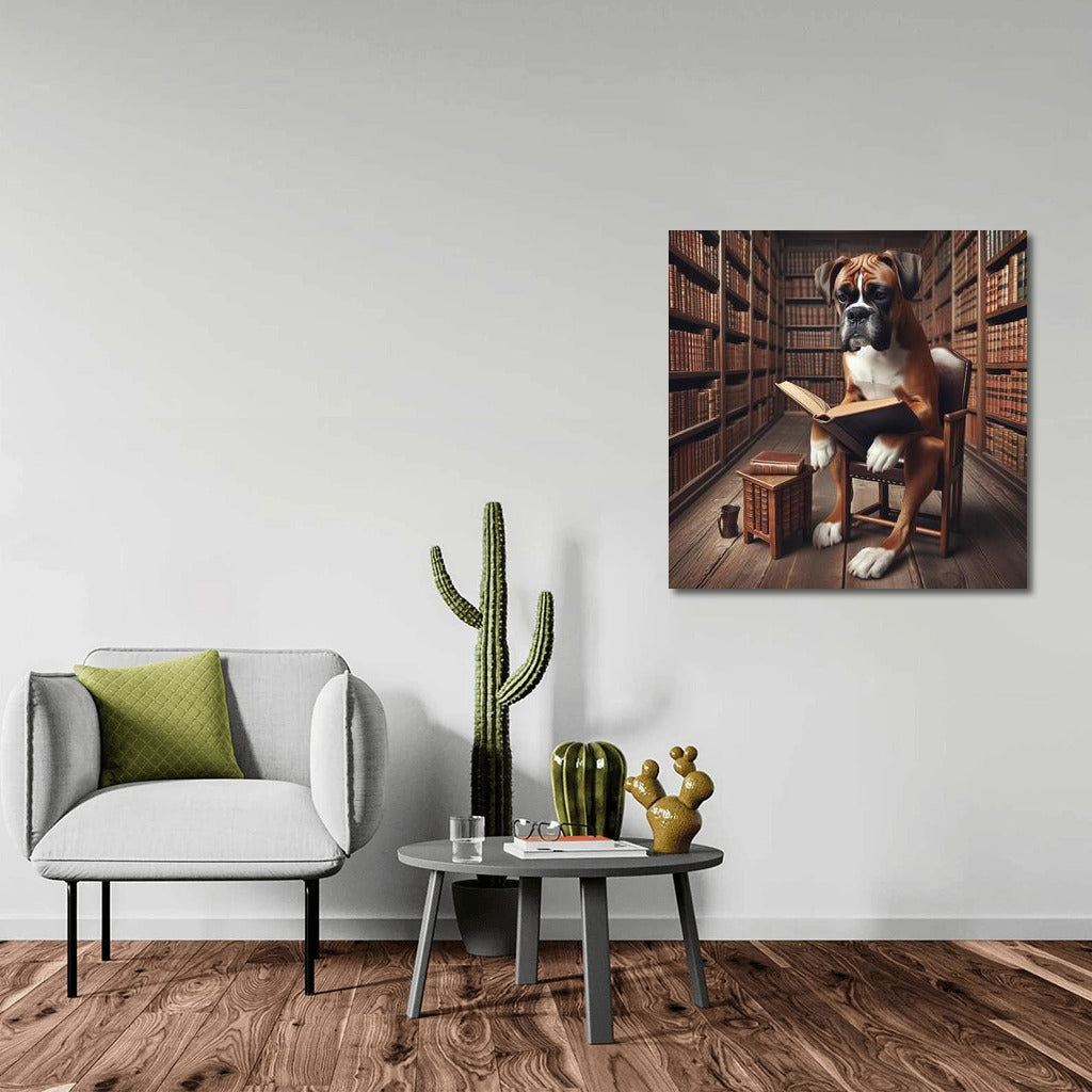 Reading Boxer in the Library: Unique Wall Art for Book Lovers Wall Art