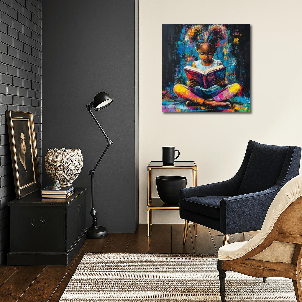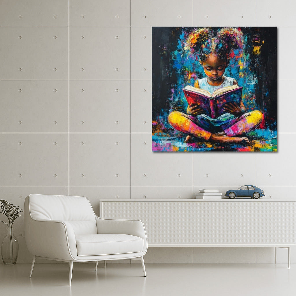 Dive into a fantasy world with this vibrant wall art: a girl and a book create magic on canvas. The perfect poster for inspiration! See more from the collection: Mixed Wall Art