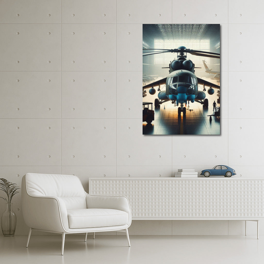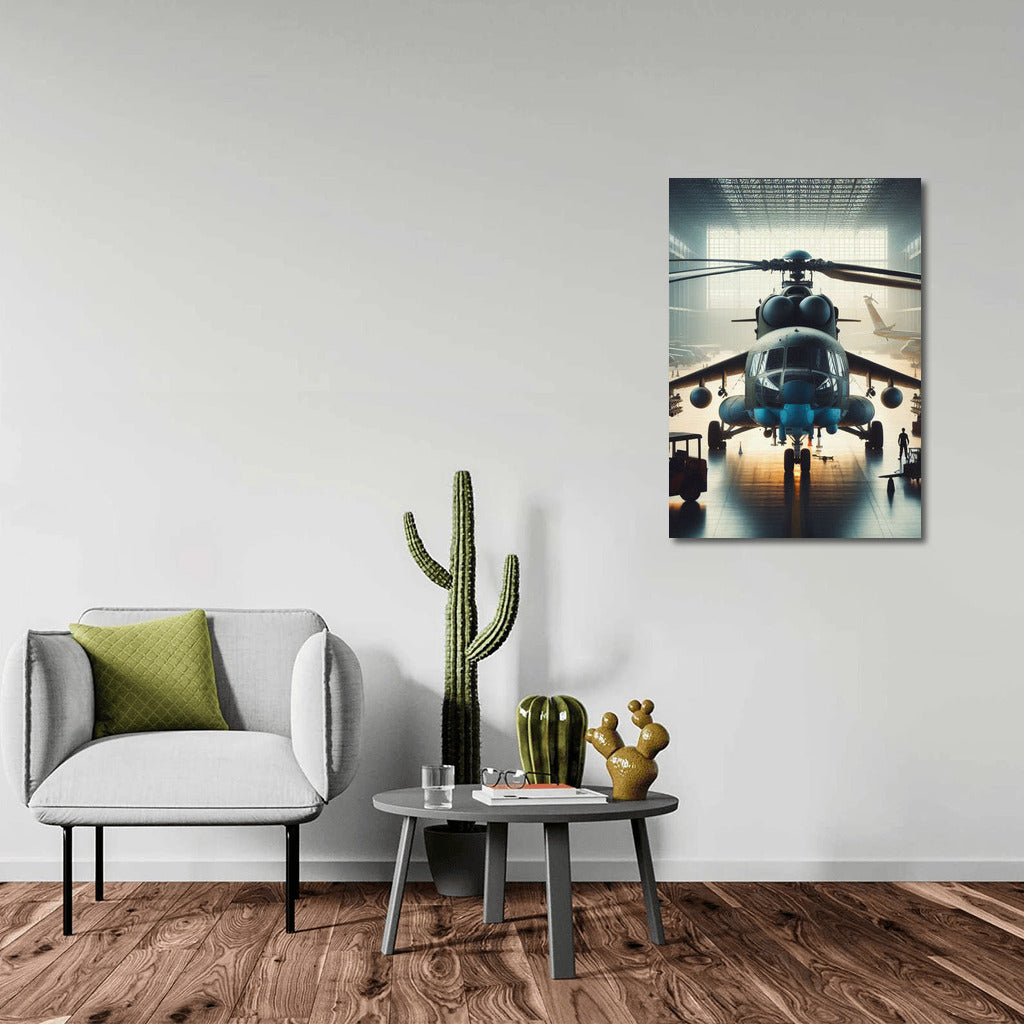 Reconnaissance Helicopter at the Airfield: Dynamics and Power of Aviation Wall Art
