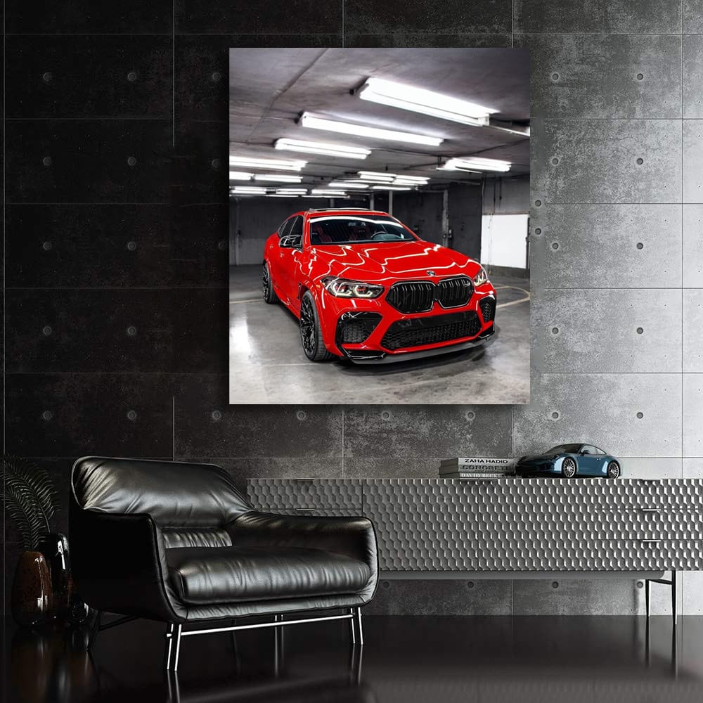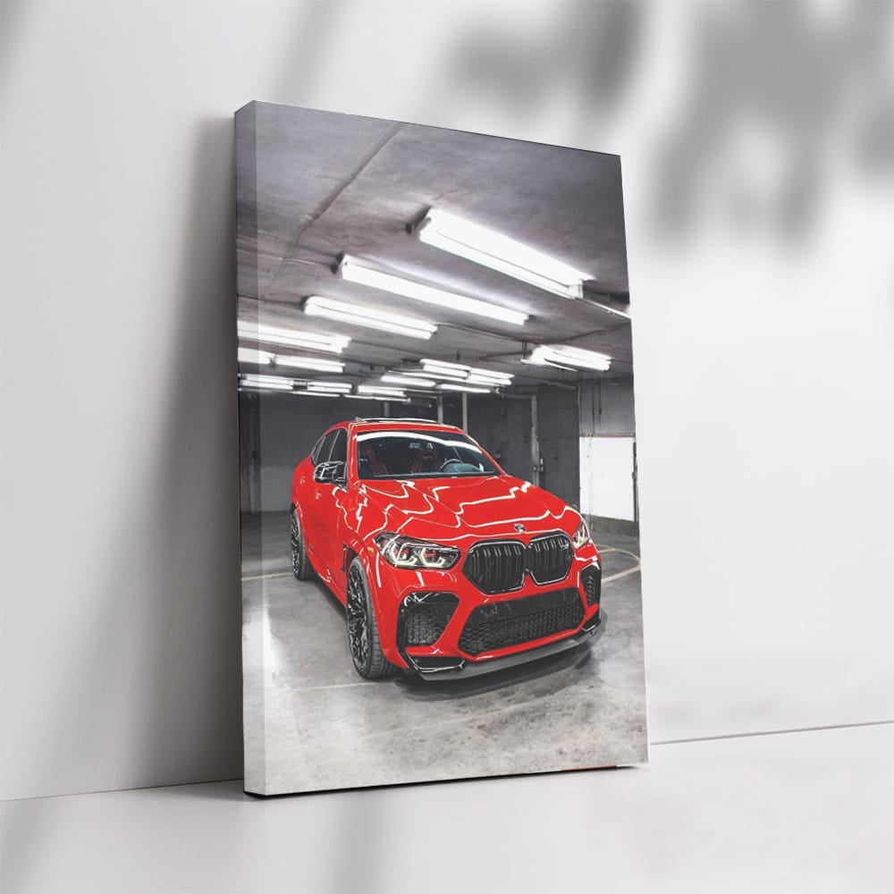 Red BMW X6 M in Parking Lot - Power and Elegance Unleashed Wall Art