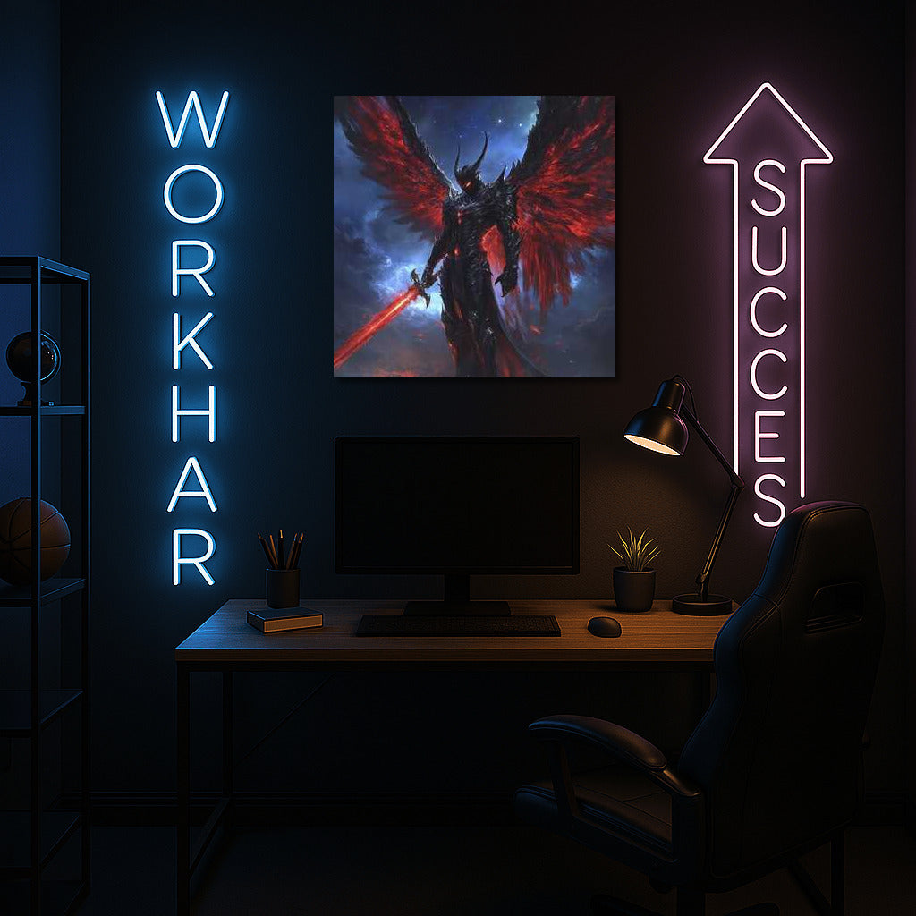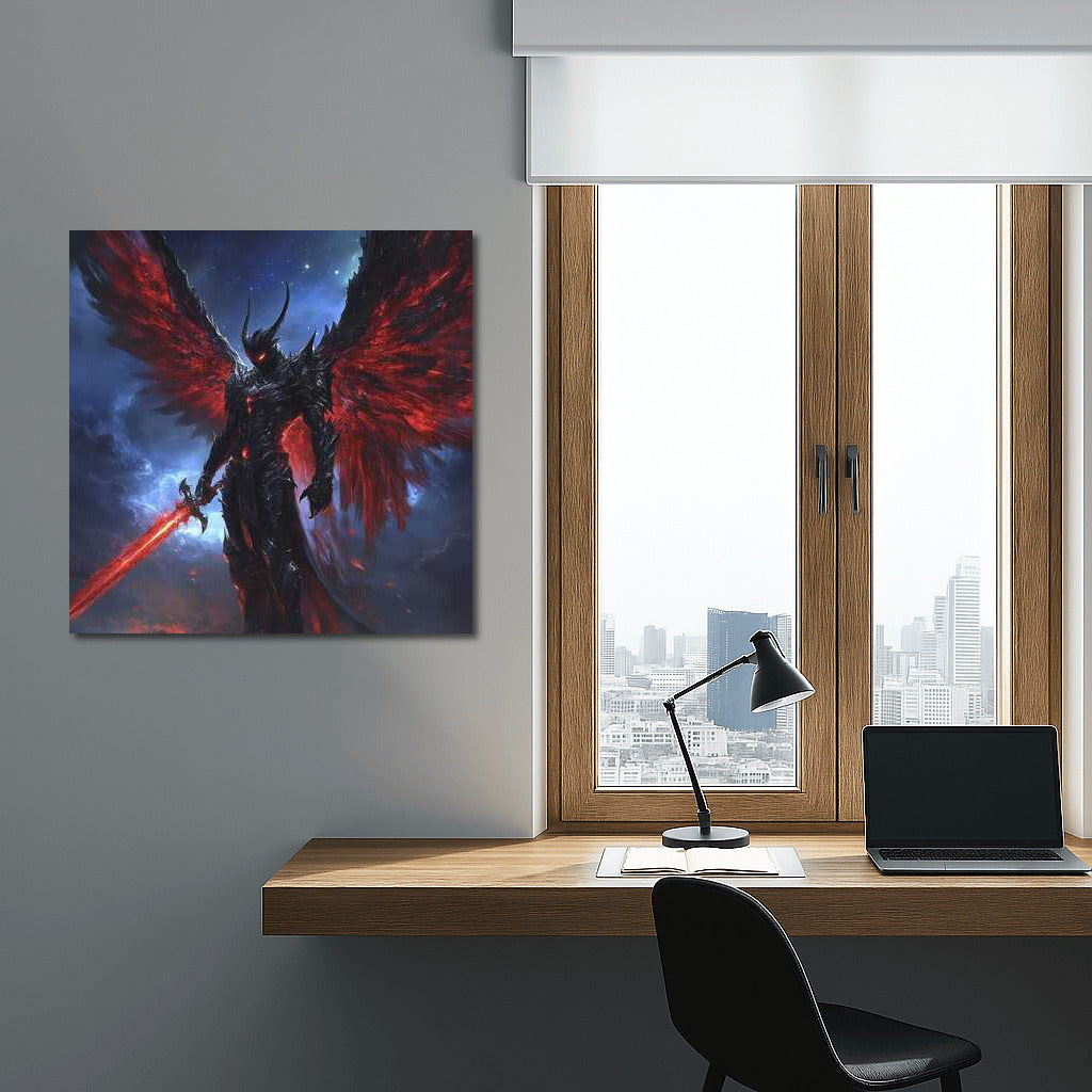 Dive into the world of Fantasy with this painting: a red demon with a flaming sword comes to life on your wall art. See more from the collection: Fantasy Art