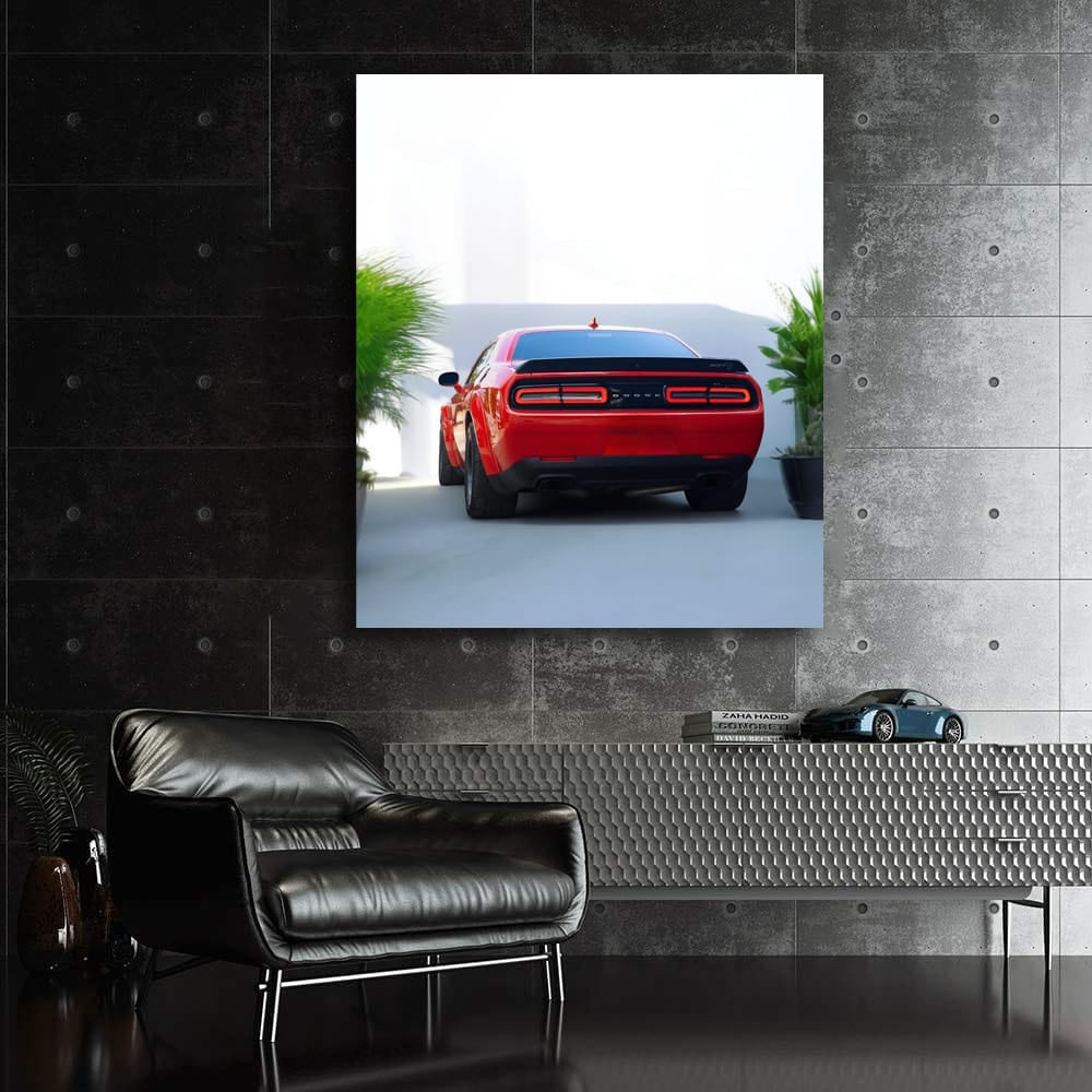 Red Dodge Challenger in Parking - Power and Style Wall Art