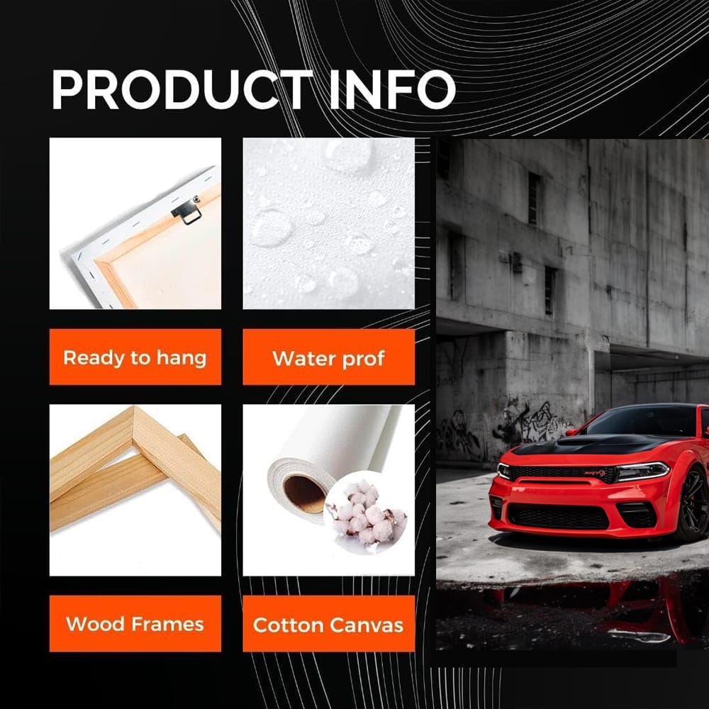 Bro, this red Dodge Charger poster is pure bliss! Ghetto style that will pump up your wall to the max. This is wall art for those who appreciate power and speed. The painting speaks for itself: boldness and adrenaline at full throttle. See more from the collection: Dodge Art