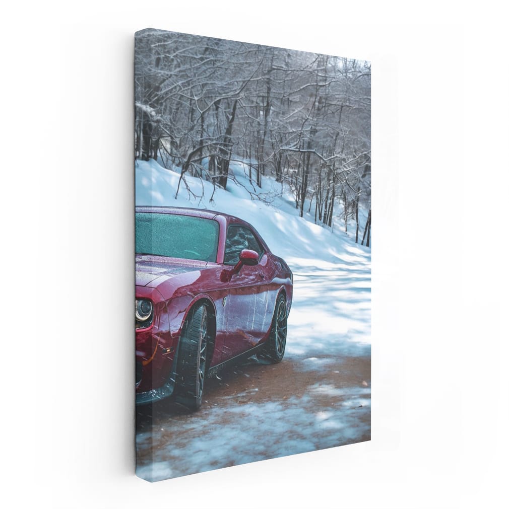 Red Dodge in Snowy Weather - Bold and Adventurous Ride Wall Art