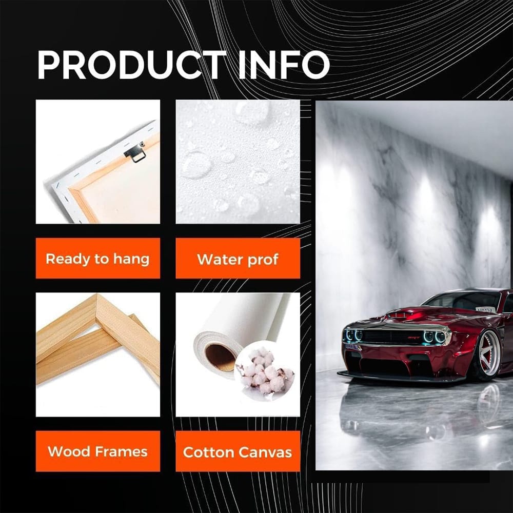 Look at this poster, bro! Dodge "red marble" is not just a painting, it's a piece of real adrenaline on the wall. Every time you pass by, you feel the engine purring. Wall art for real car fans. See more from the collection: Dodge Art