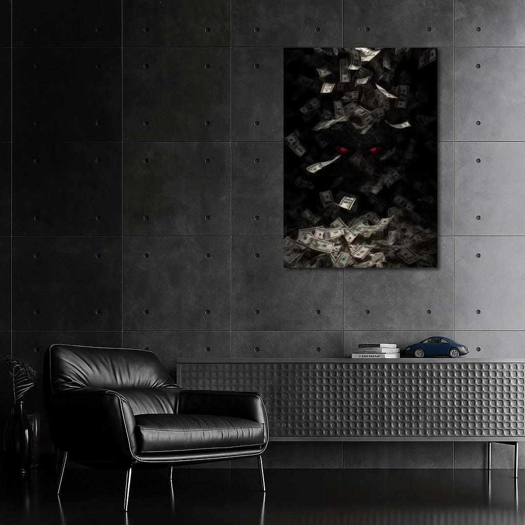 Mysterious red eyes behind the curtain of money create an atmosphere of mystery and luxury. Money wall art is waiting for you! See more from the collection: Money Art