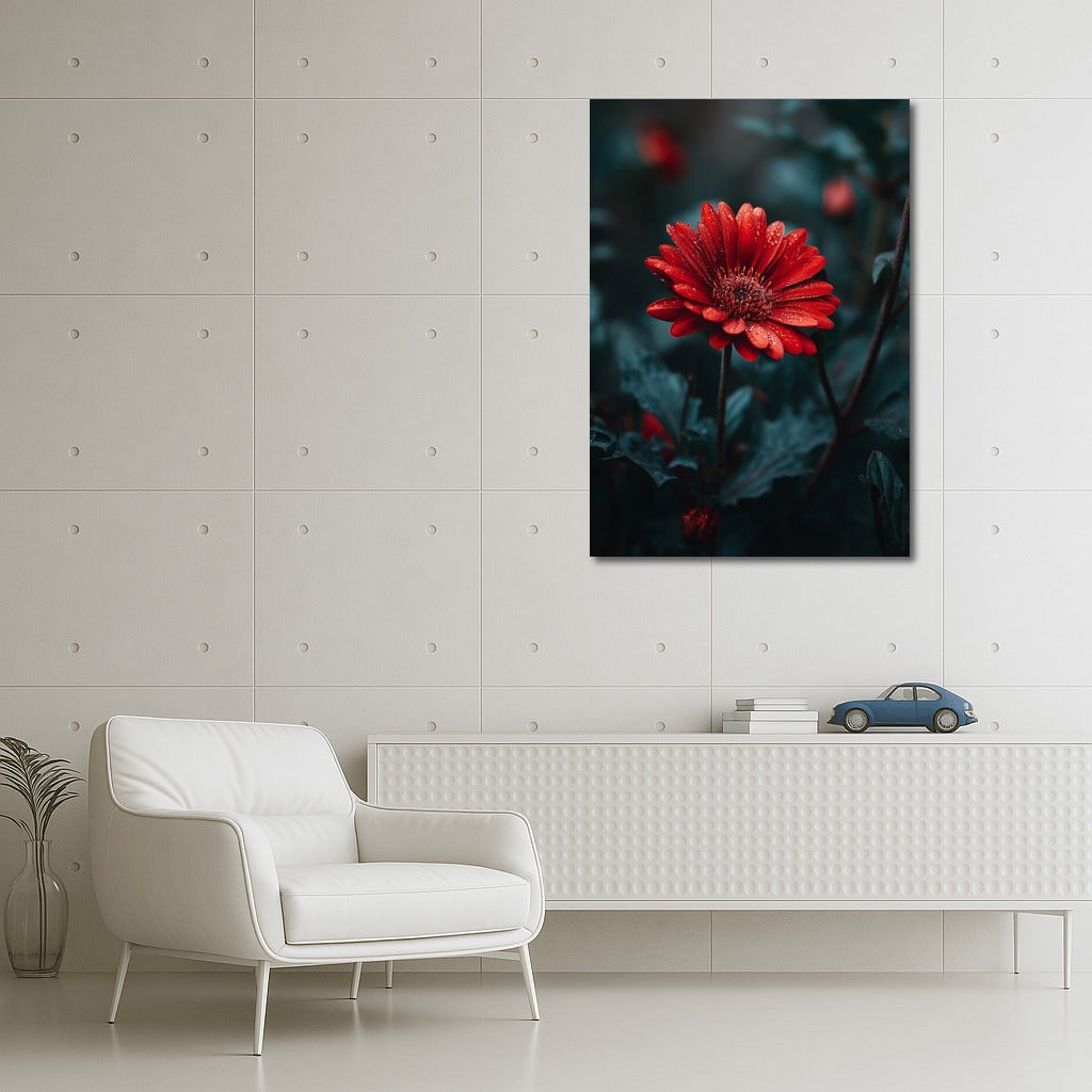 A poster with a red gerbera will liven up your interior! This wall art inspires with the atmosphere of nature and the sophistication of forms. See more from the collection: Flowers Art