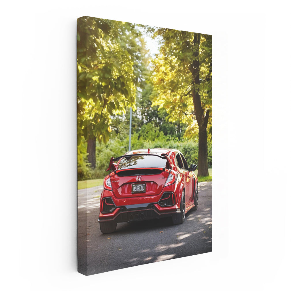 Red Honda Civic in Nature - Compact Marvel Wall Art