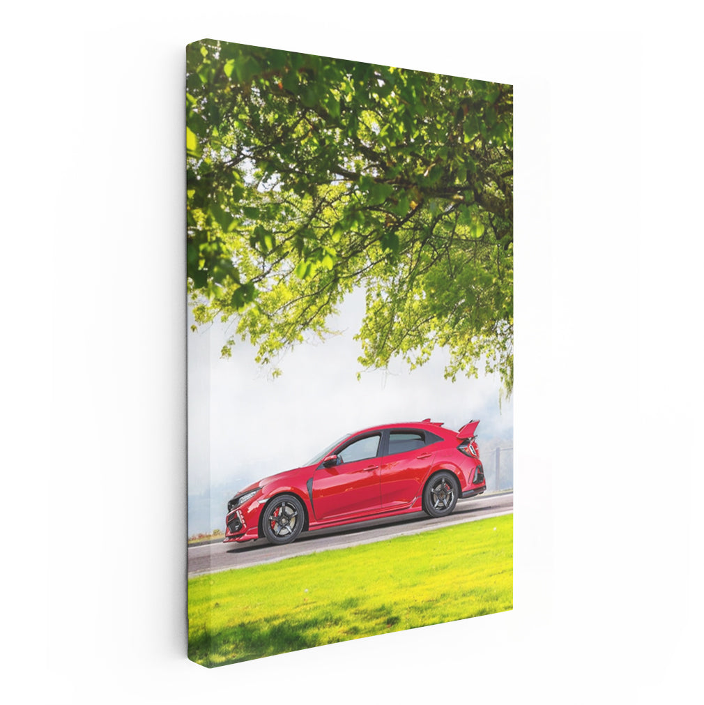 Red Honda Civic Roaming Freely in Nature - Timeless Classic Wall Art