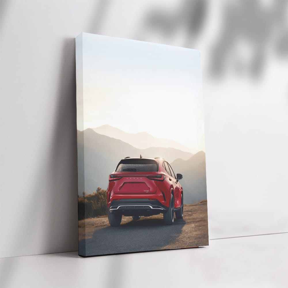 Red Lexus in Mountain Scenery - Adventure Awaits Wall Art