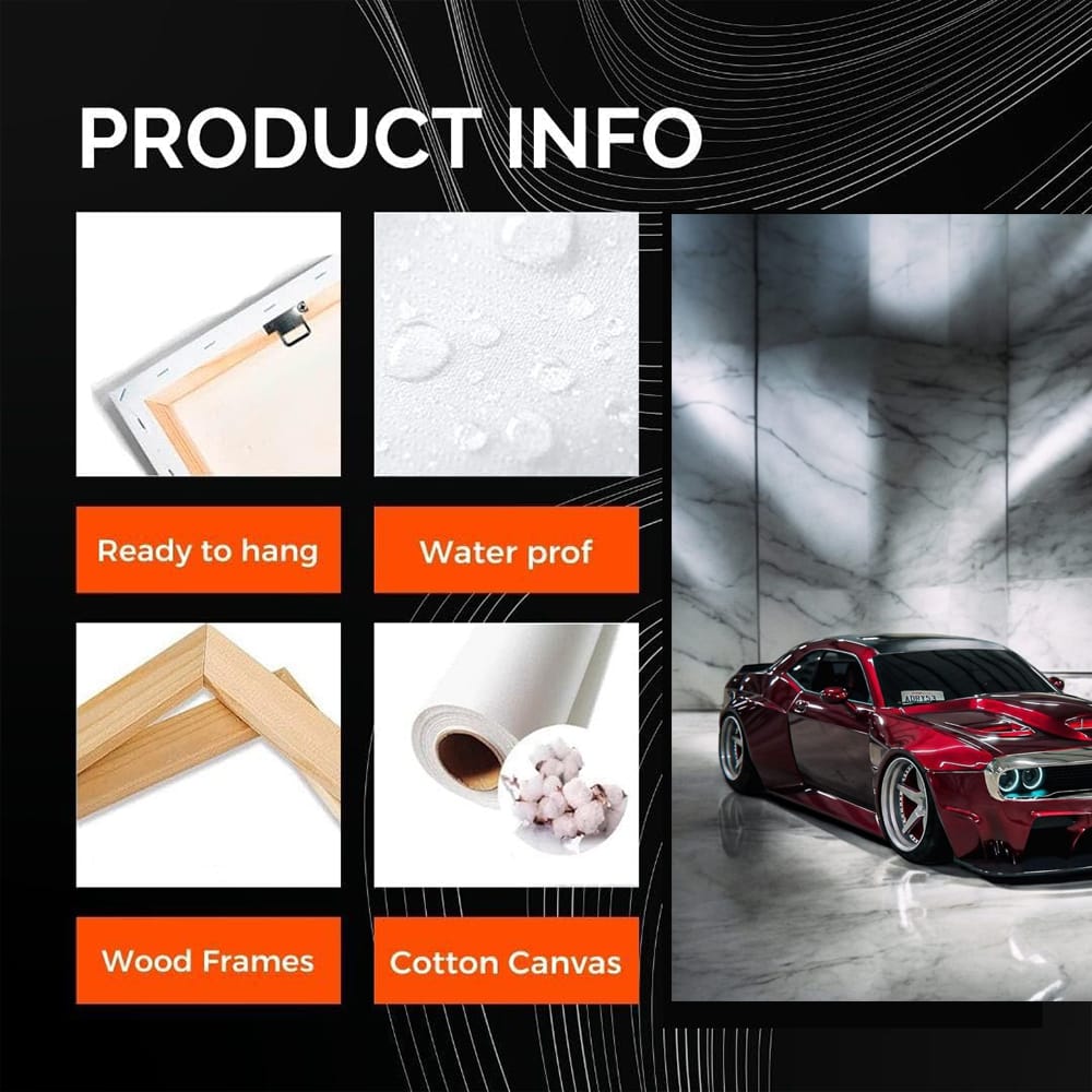 Look at this poster, bro! Dodge on red marble is just fire. Wall art for those who are into it. This is not just a painting, but a piece of adrenaline on your wall. It's impressive, as if you are accelerating on the highway at full speed. See more from the collection: Dodge Art