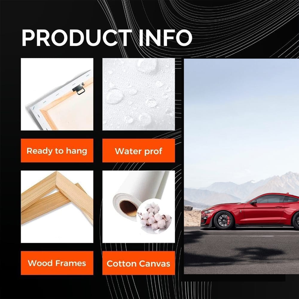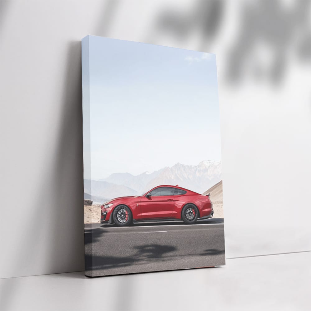 This is not just a painting - this is a real poster for fans of speed. "Mustang" in red, rushing through the mountains, breaking the silence with the roar of its engine. Wall art for those who understand the sense of real iron horses. See more from the collection: Ford Art