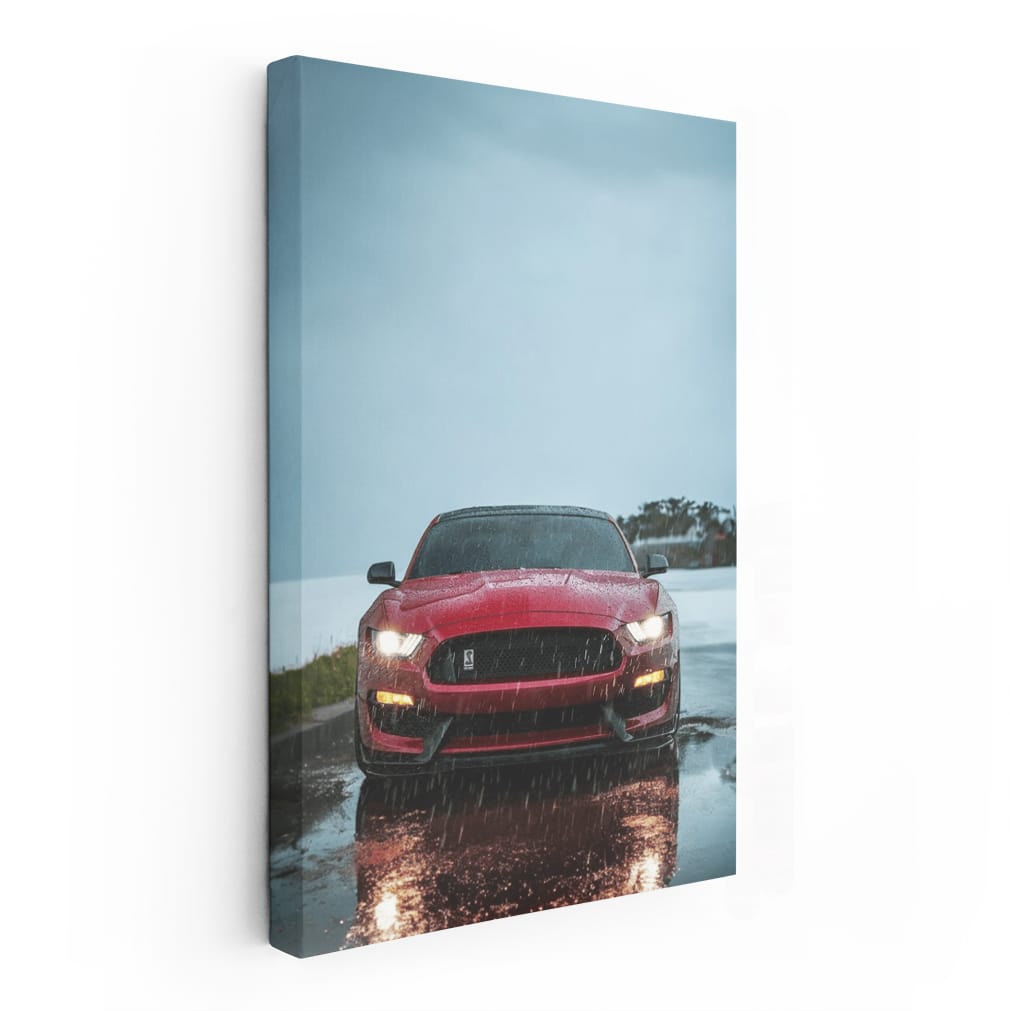Red Mustang in Rain - Bold Elegance on Wheels Wall Art