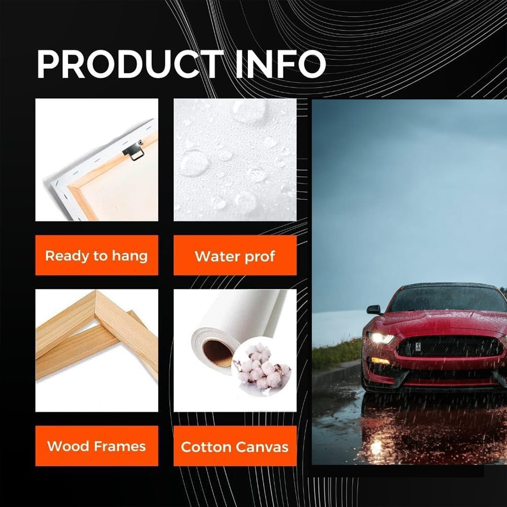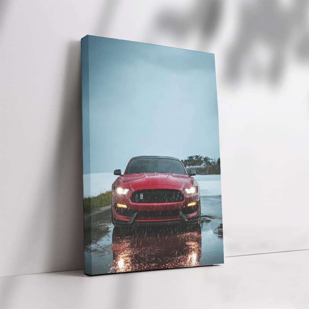 What a wall art! A red mustang, wet from the rain, as if it just left a hellish race. This painting says: "I'm the boss here". A poster for true connoisseurs of speed and adrenaline. Such art will add fire to any car-collection! See more from the collection: Ford Art