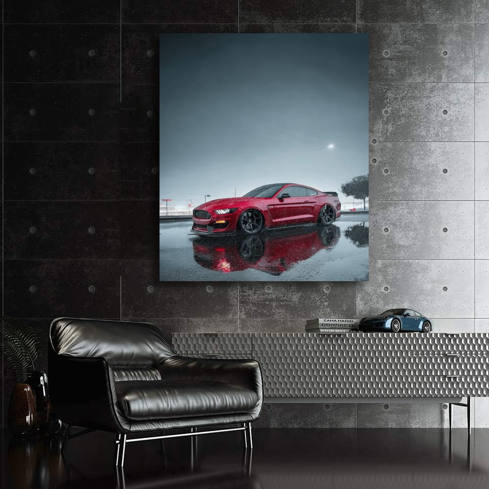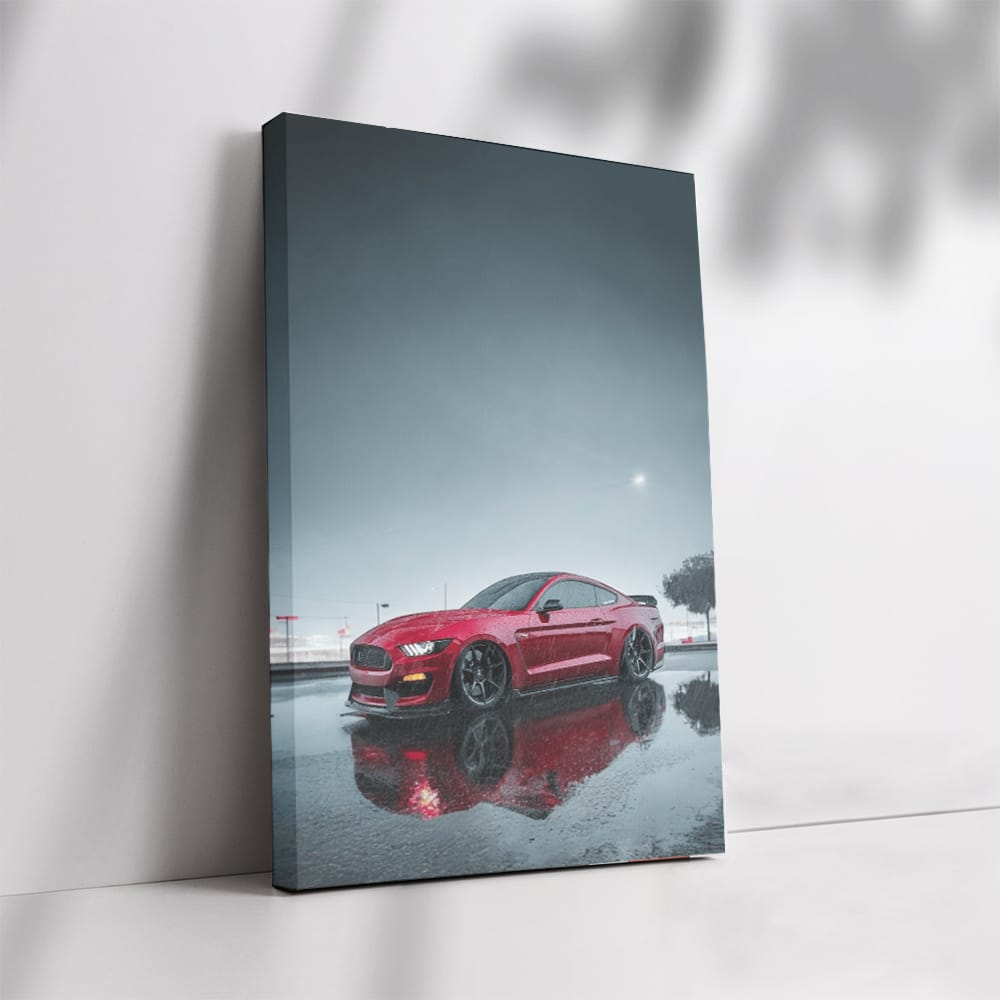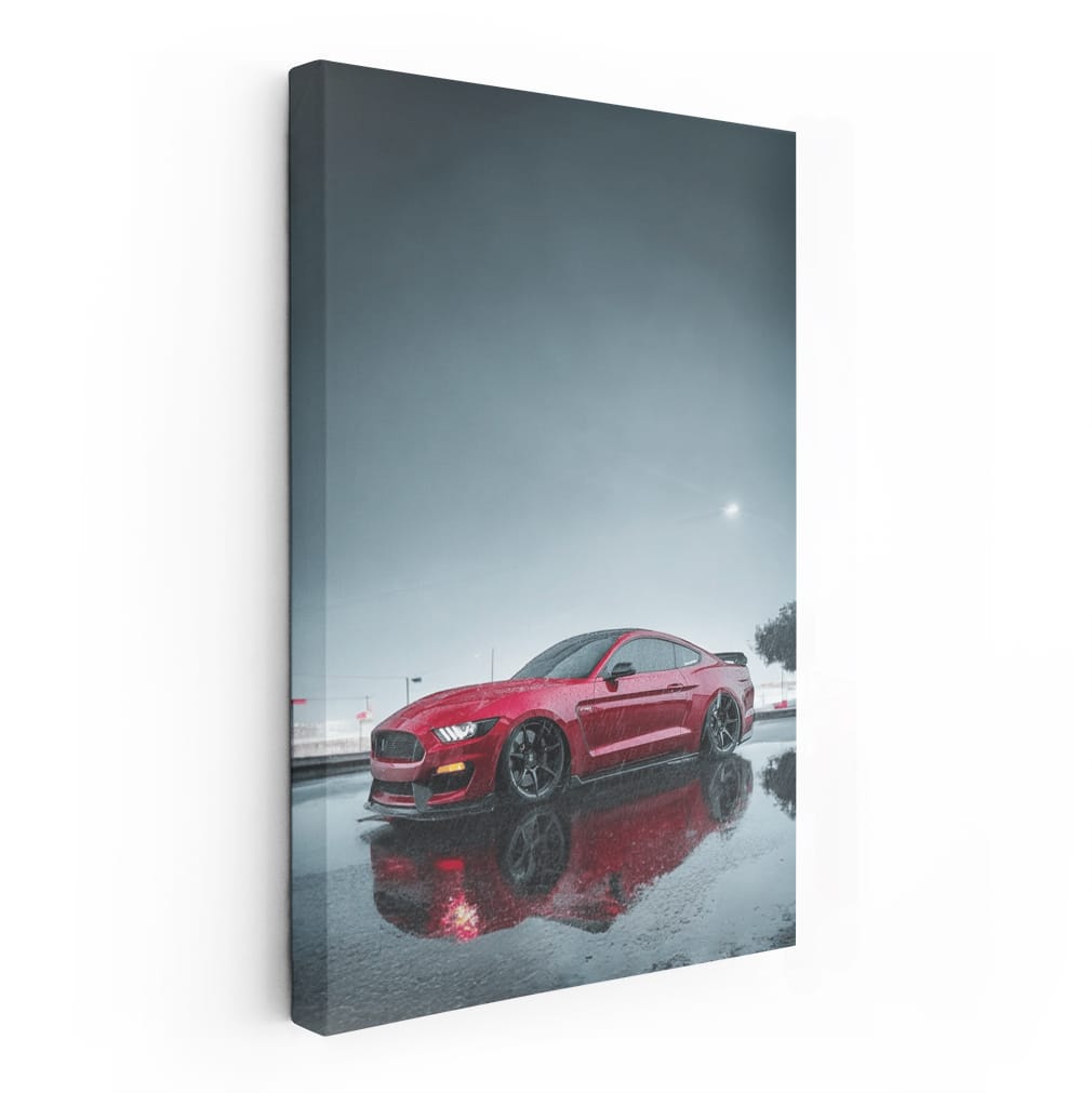 Red Mustang in Rain - Classic Roar on Wet Roads Wall Art