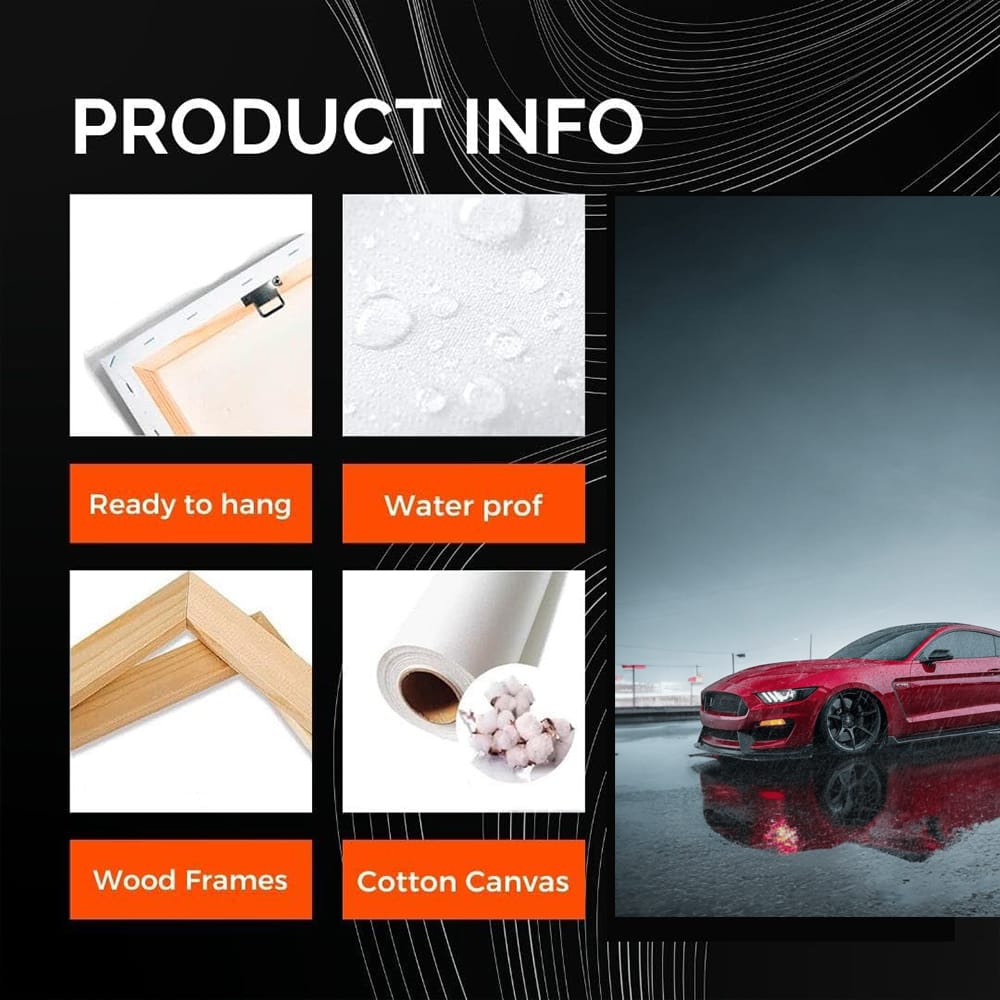 Mustang in the Rain is a poster that simply screams "power and style". A red beast on the road, washed by streams of rain. Wall art for those who live for speed. A painting that awakens the thirst for drive in every auto guru. See more from the collection: Ford Art