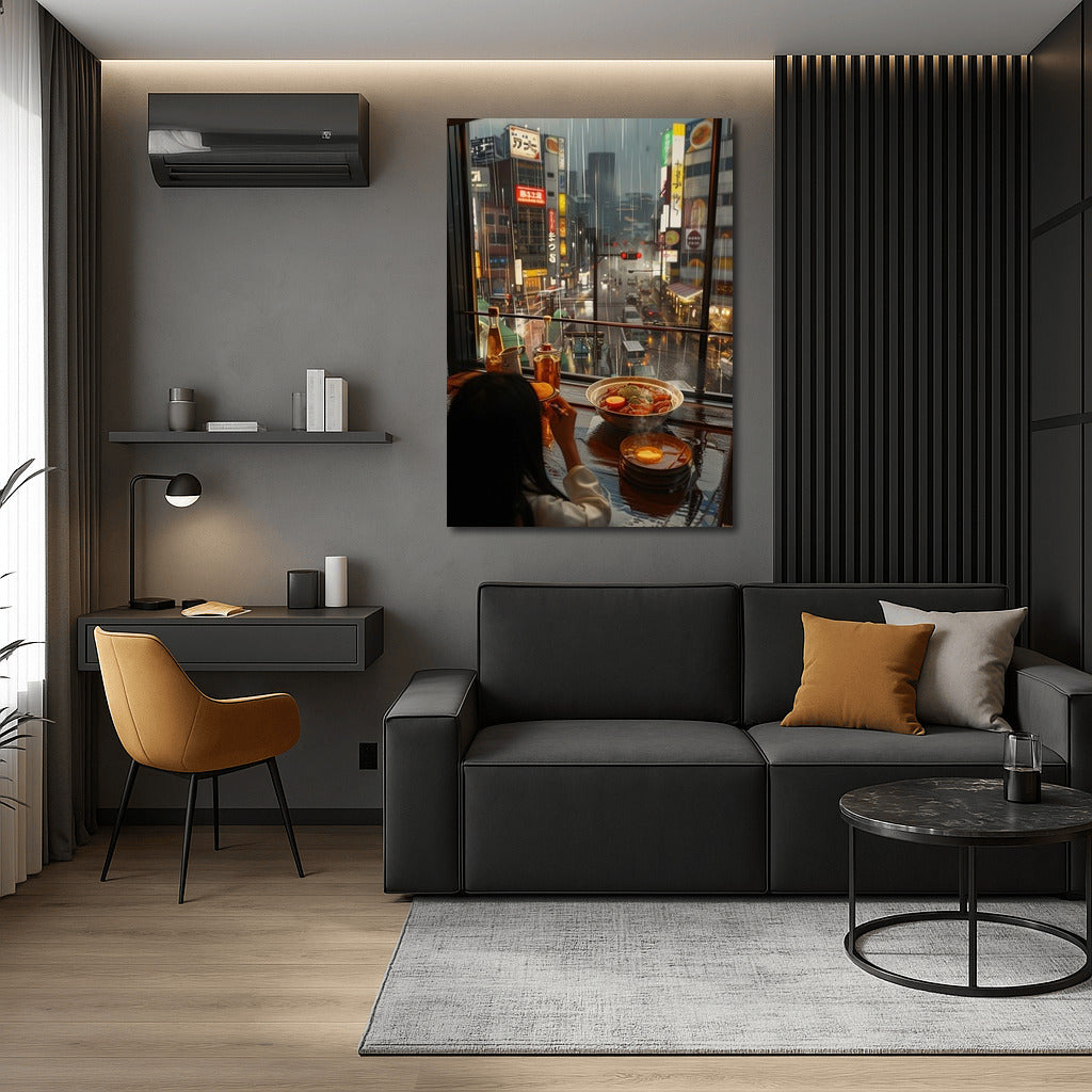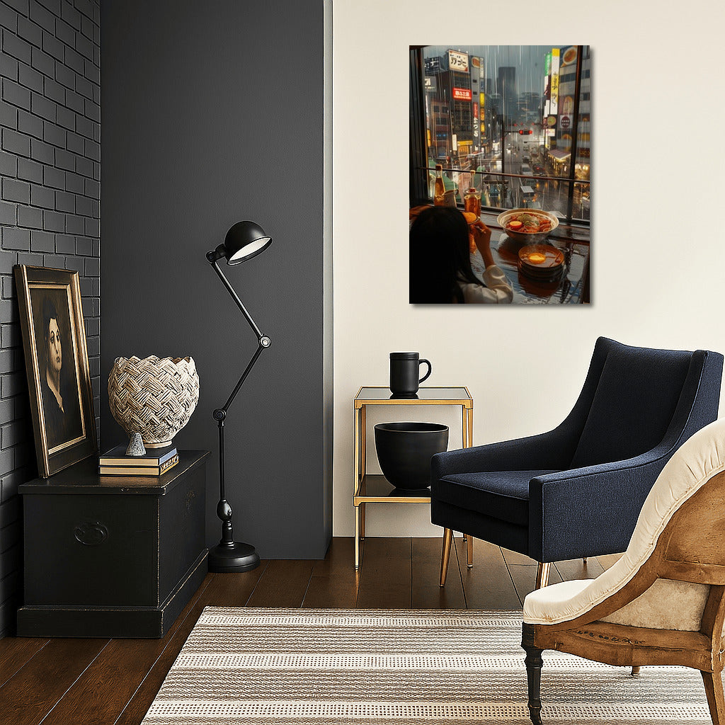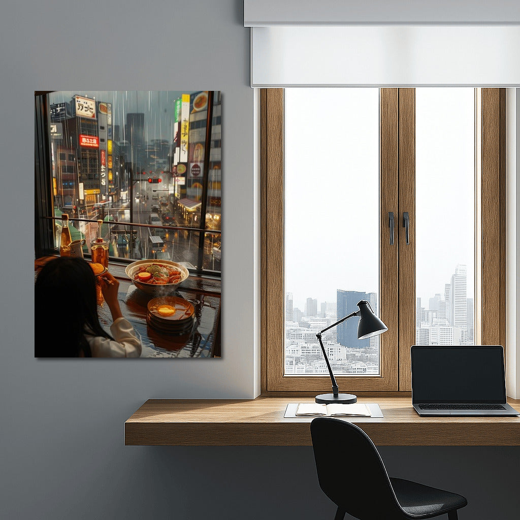 Rainy evening in the metropolis - immerse yourself in the atmosphere of urban magic with this art poster for your interior. See more from the collection: Cityscapes & Skylines Art