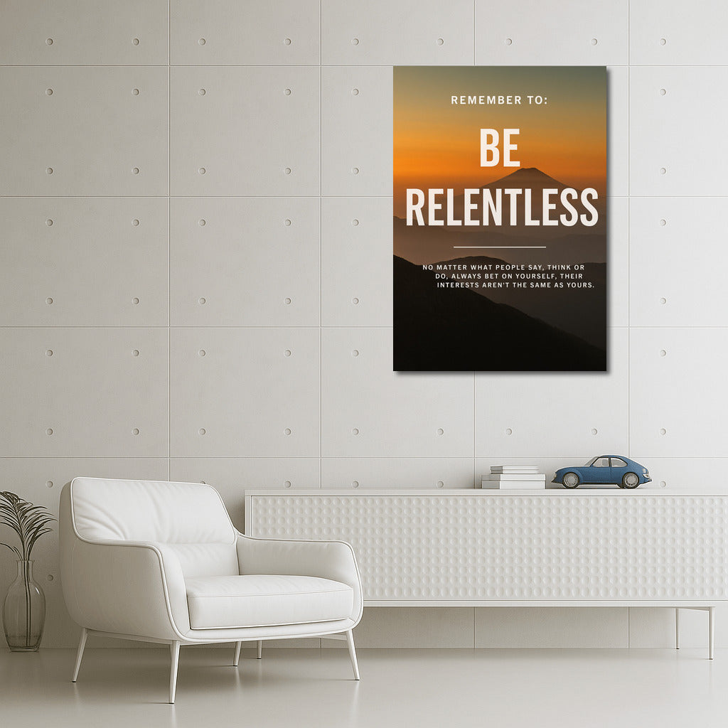 The poster inspires to be relentless and believe in yourself. Wall art to build tenacity and decisive thinking. See more from the collection: Inspirational & Motivational Quotes Art