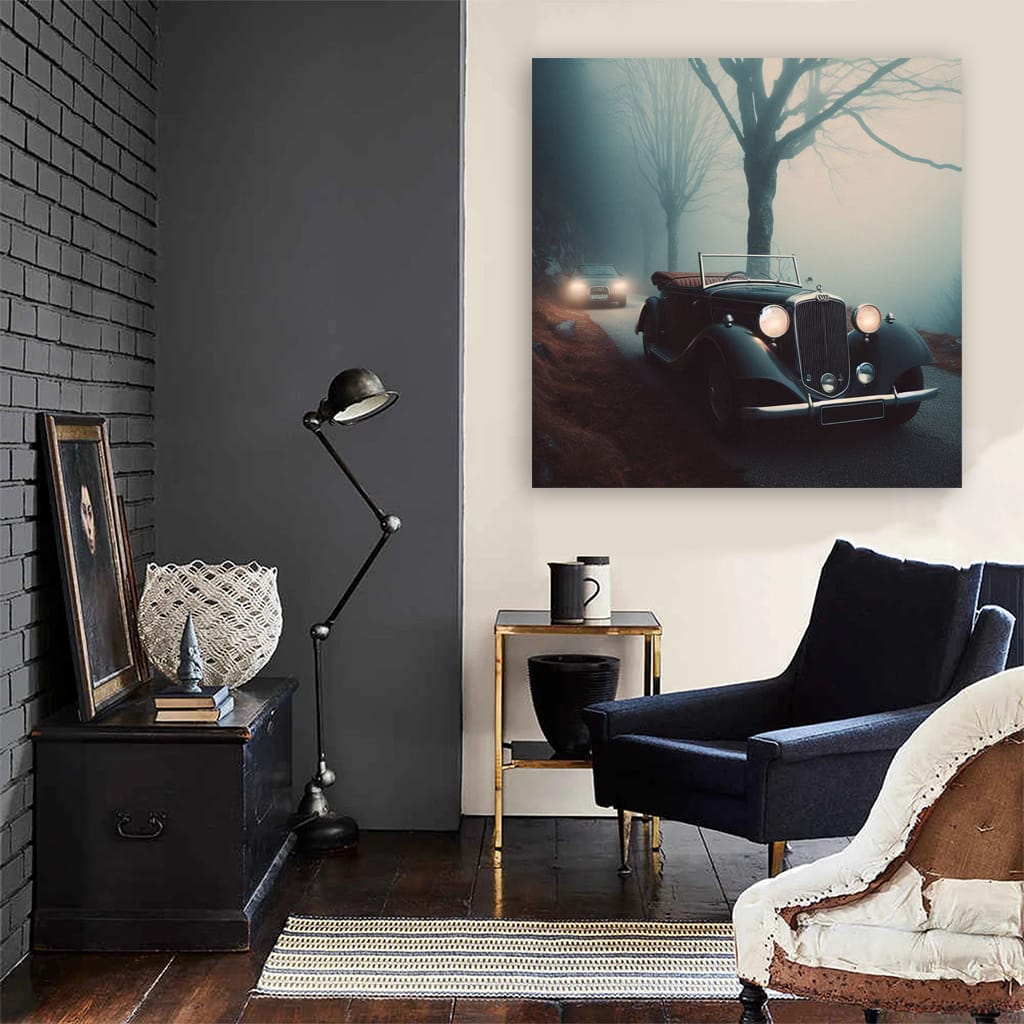 Retro Audi in Fog - Classic Elegance Meets Timeless Style Wall Art