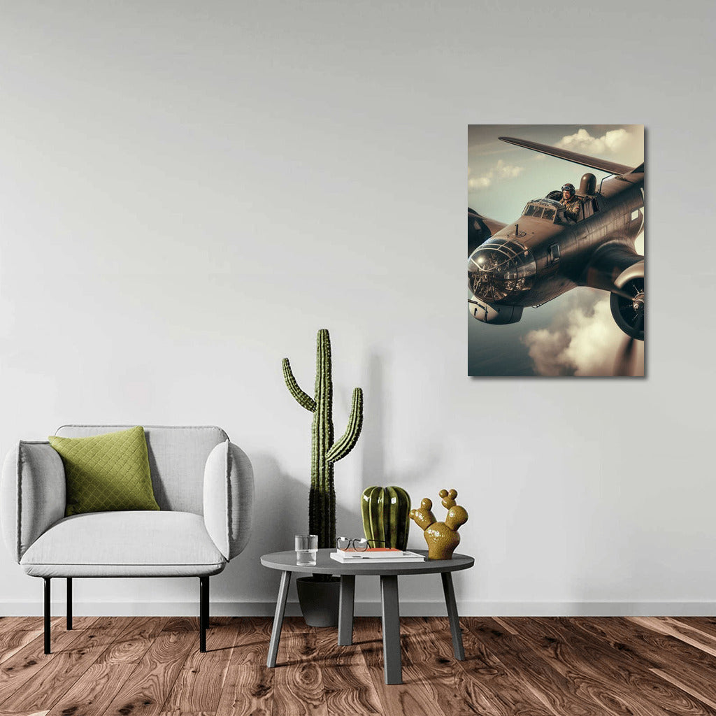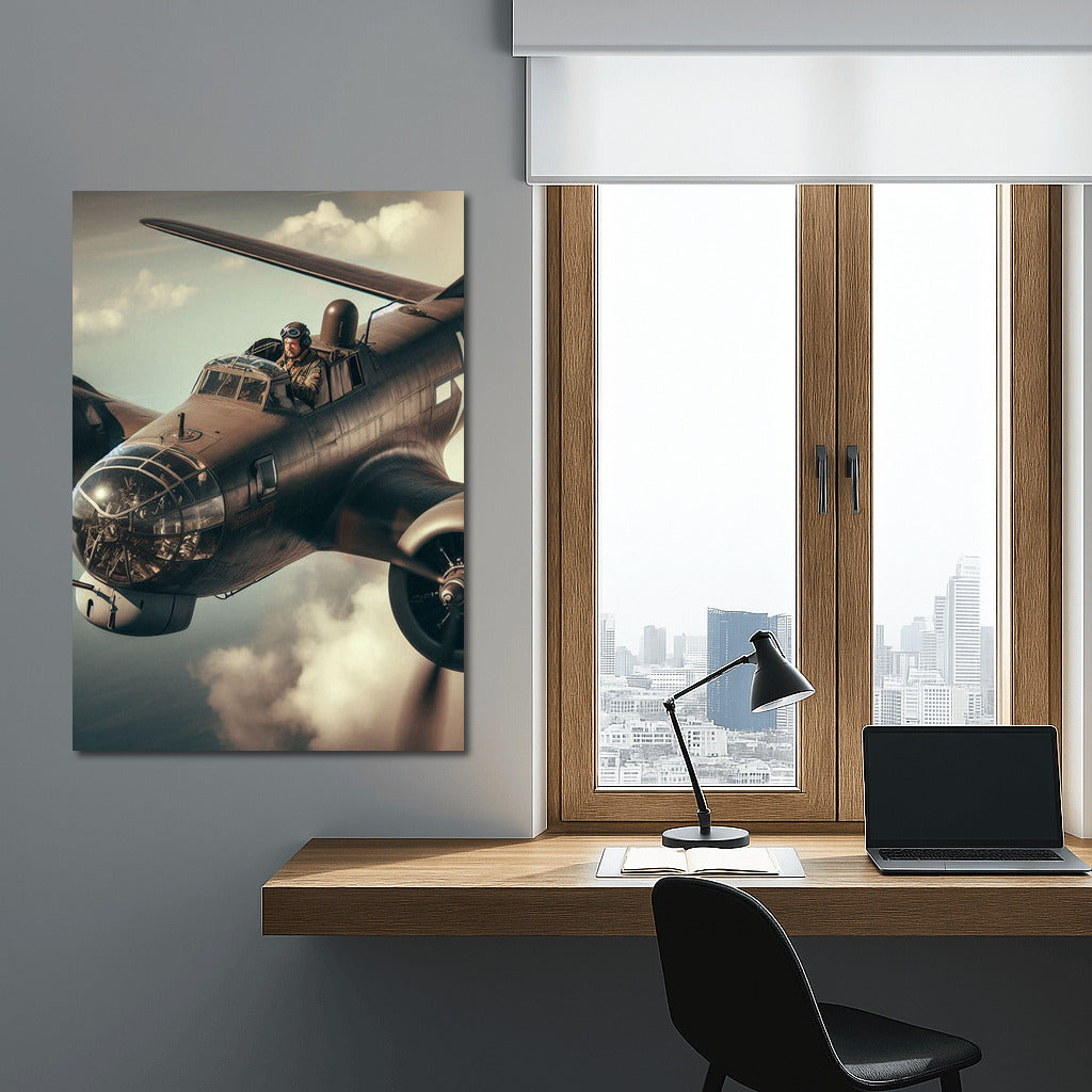 Retro Bomber in the Clouds: An Aerial Elegy for Aviation Lovers Wall Art
