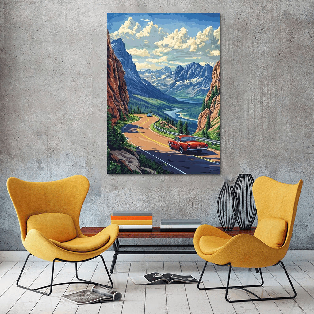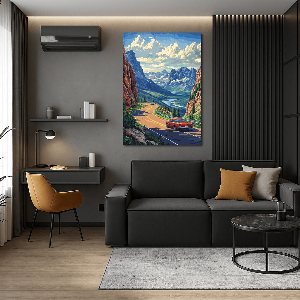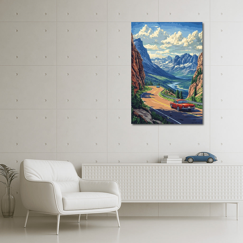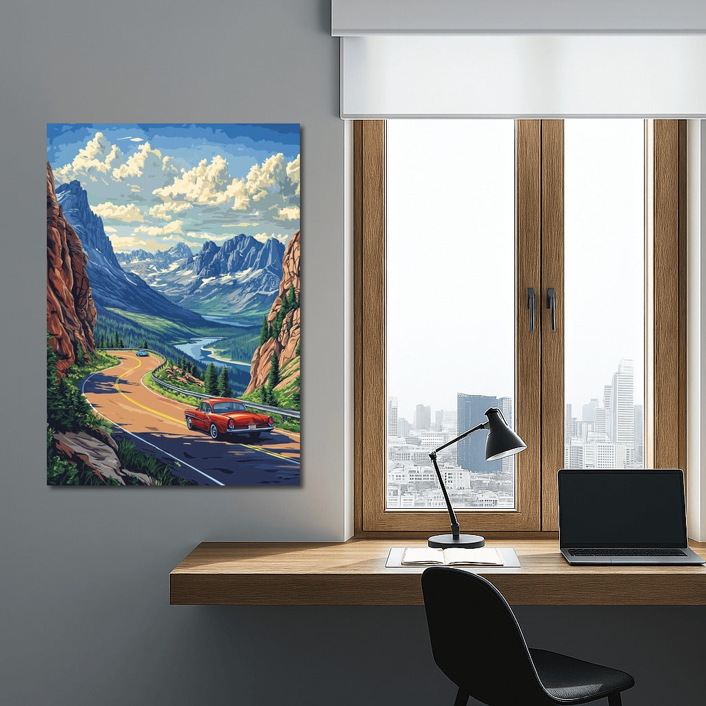 The poster shows a mountain road in the clouds with a retro car. Bring life to your walls with art that invites you to travel! See more from the collection: Anime & Manga genres Art