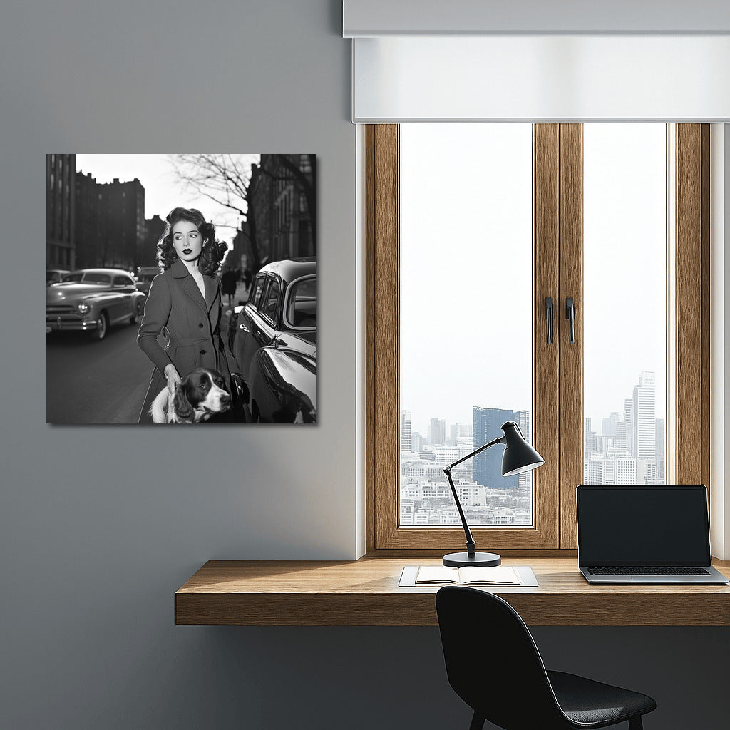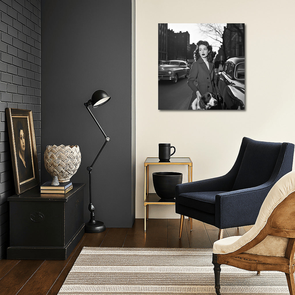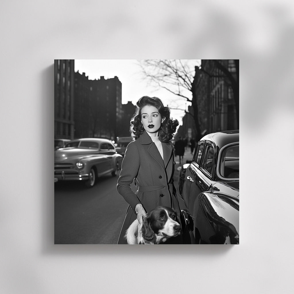 A graceful stroll through retro city streets, this poster will add a stylish accent to your wall art. See more from the collection: Black and White Art