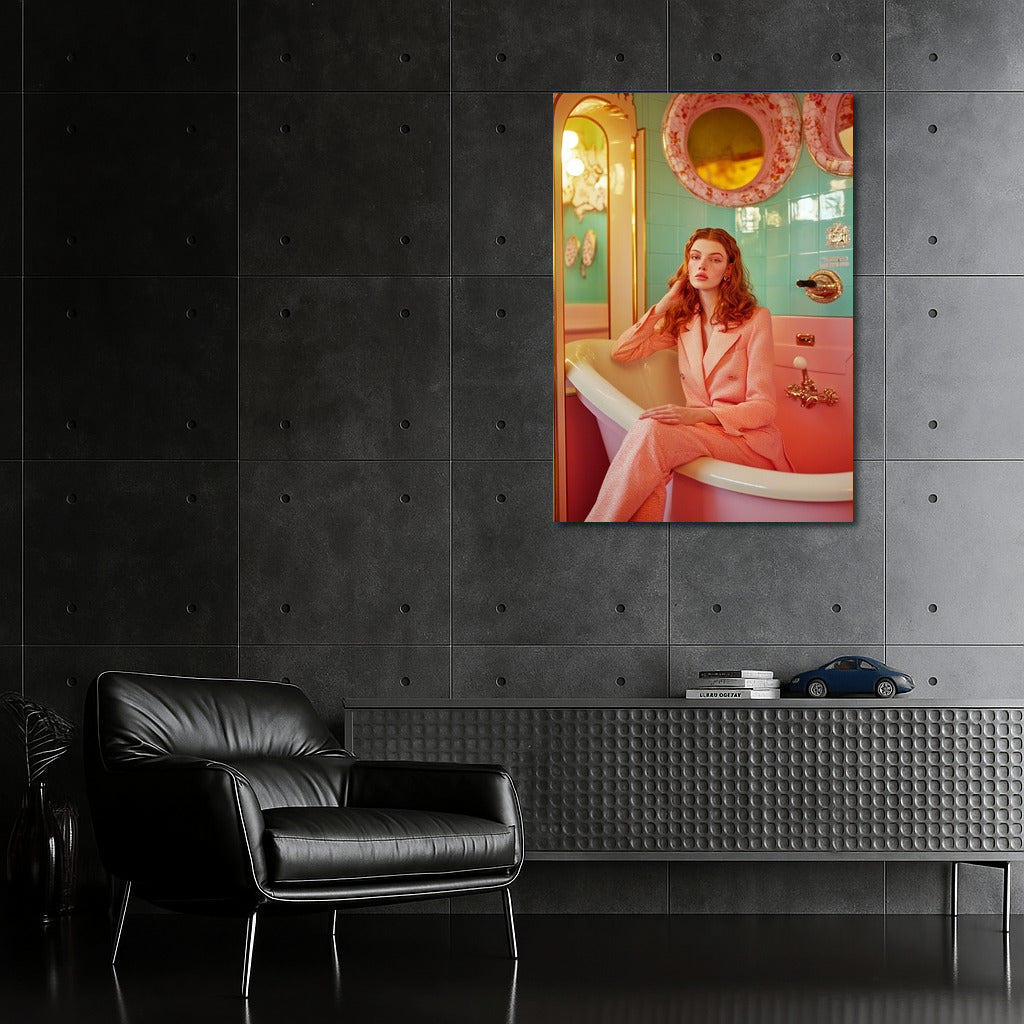 A cozy corner in retro style: a poster with an elegant figure in a bathtub, drowning in pastel shades. Add charm to the interior! See more from the collection: Wall Art with Women