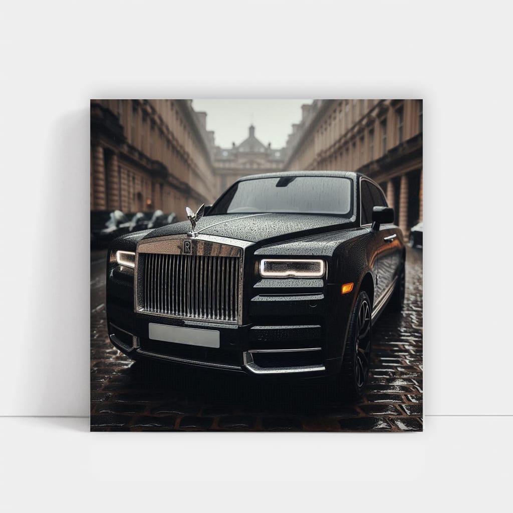 This painting of a Rolls-Royce Cullinan against a cloudy sky is pure joy for car lovers. Wall art that will make your heart beat faster. A poster for those who understand the classics and dream of luxury on wheels. See more from the collection: Rolls Royce Art