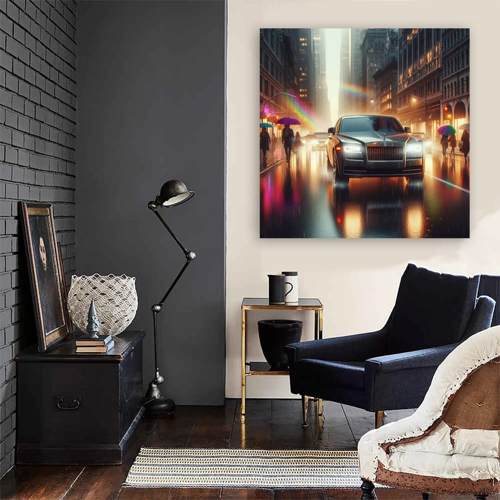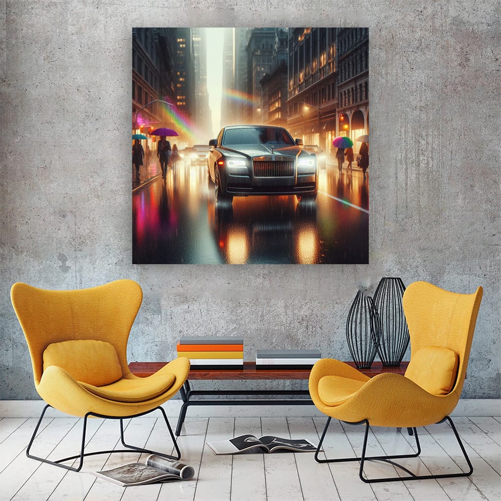 Rolls-Royce Ghost in Rainy Weather - Elegance Redefined Wall Art