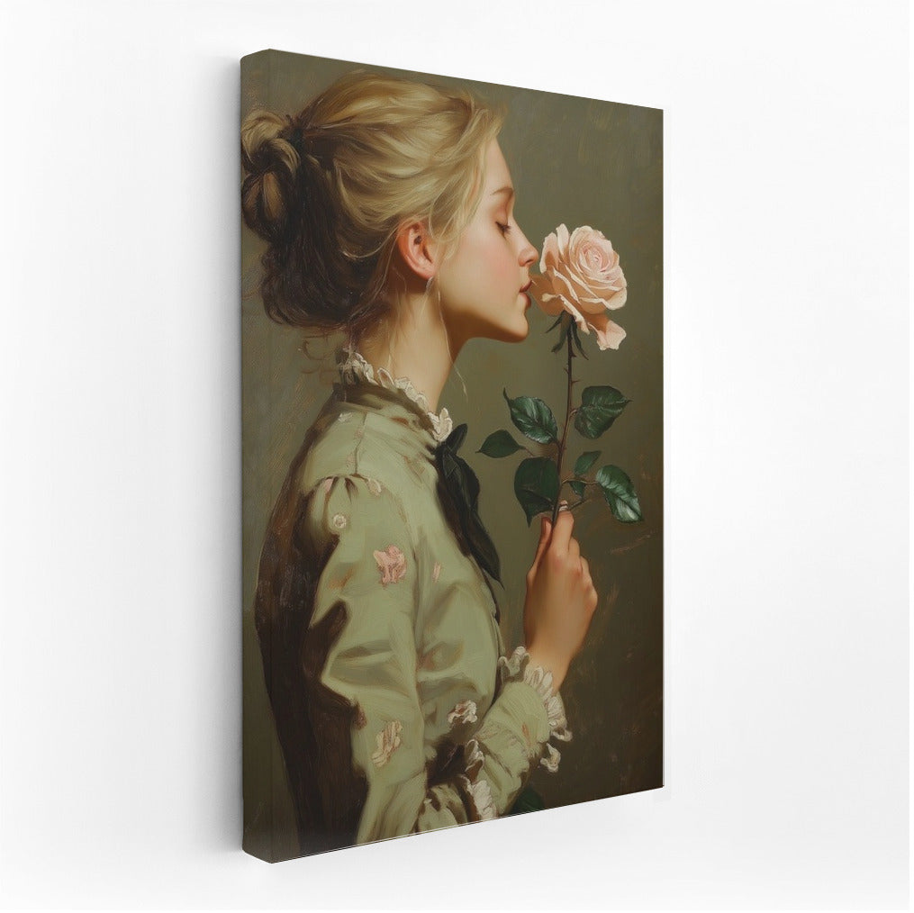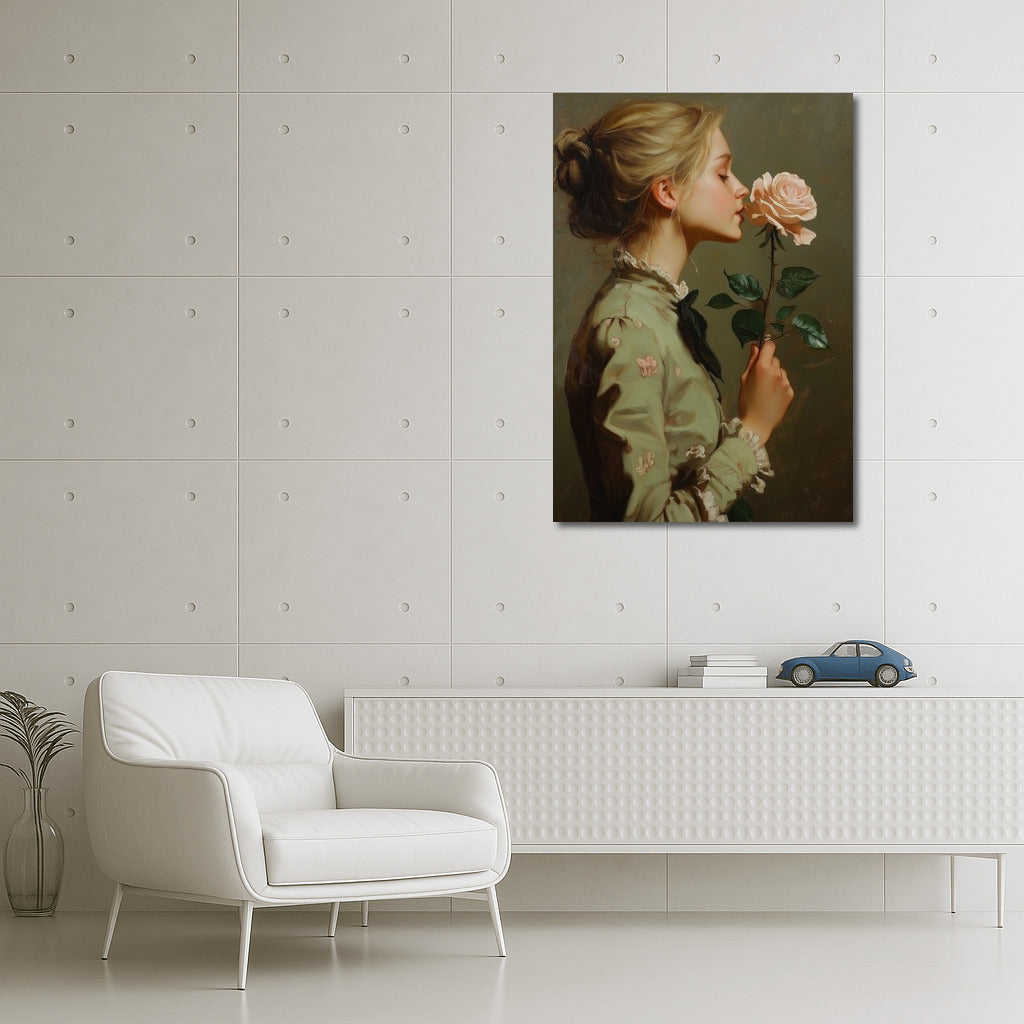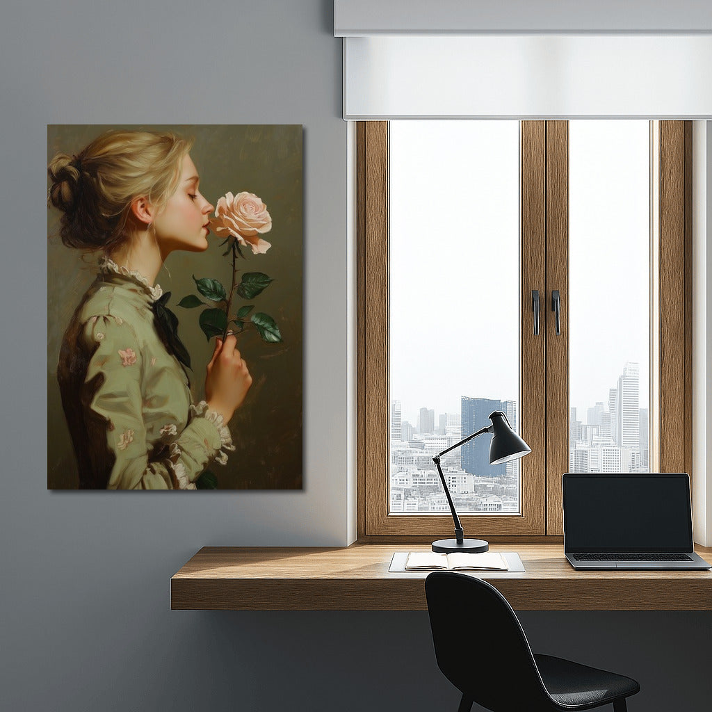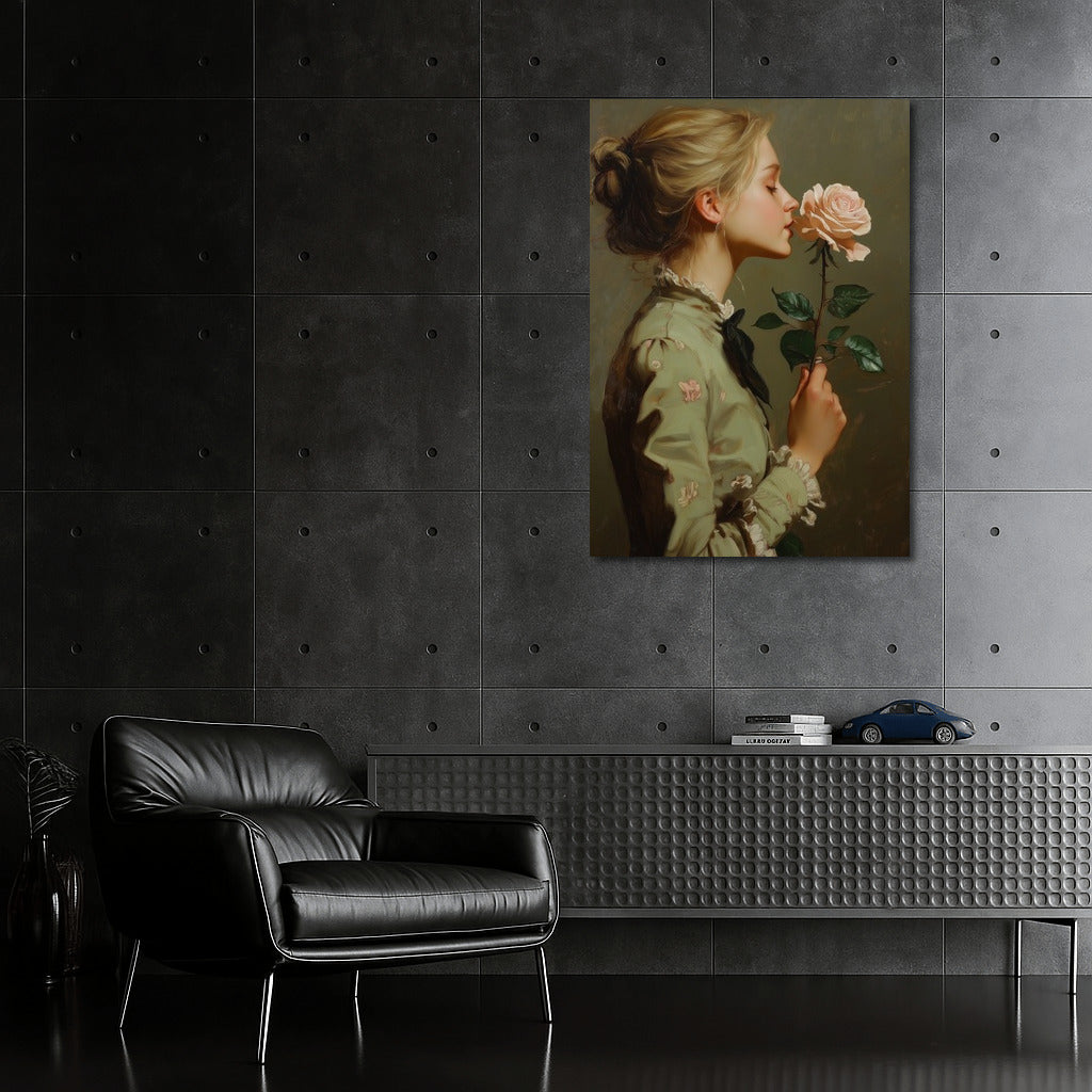 Elegant girl with a rose. This painting will become your exquisite wall art. Feel the aroma of art in the air! See more from the collection: Wall Art with Women