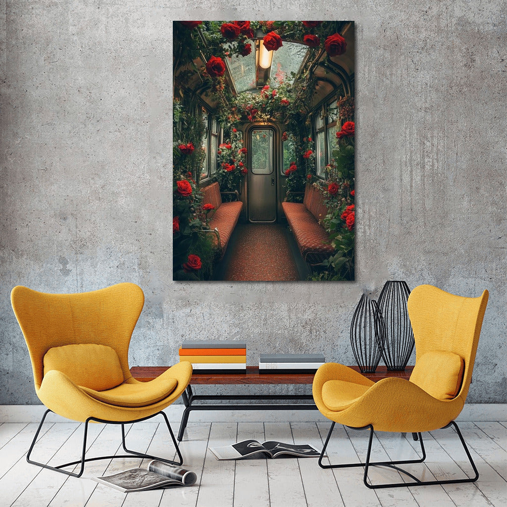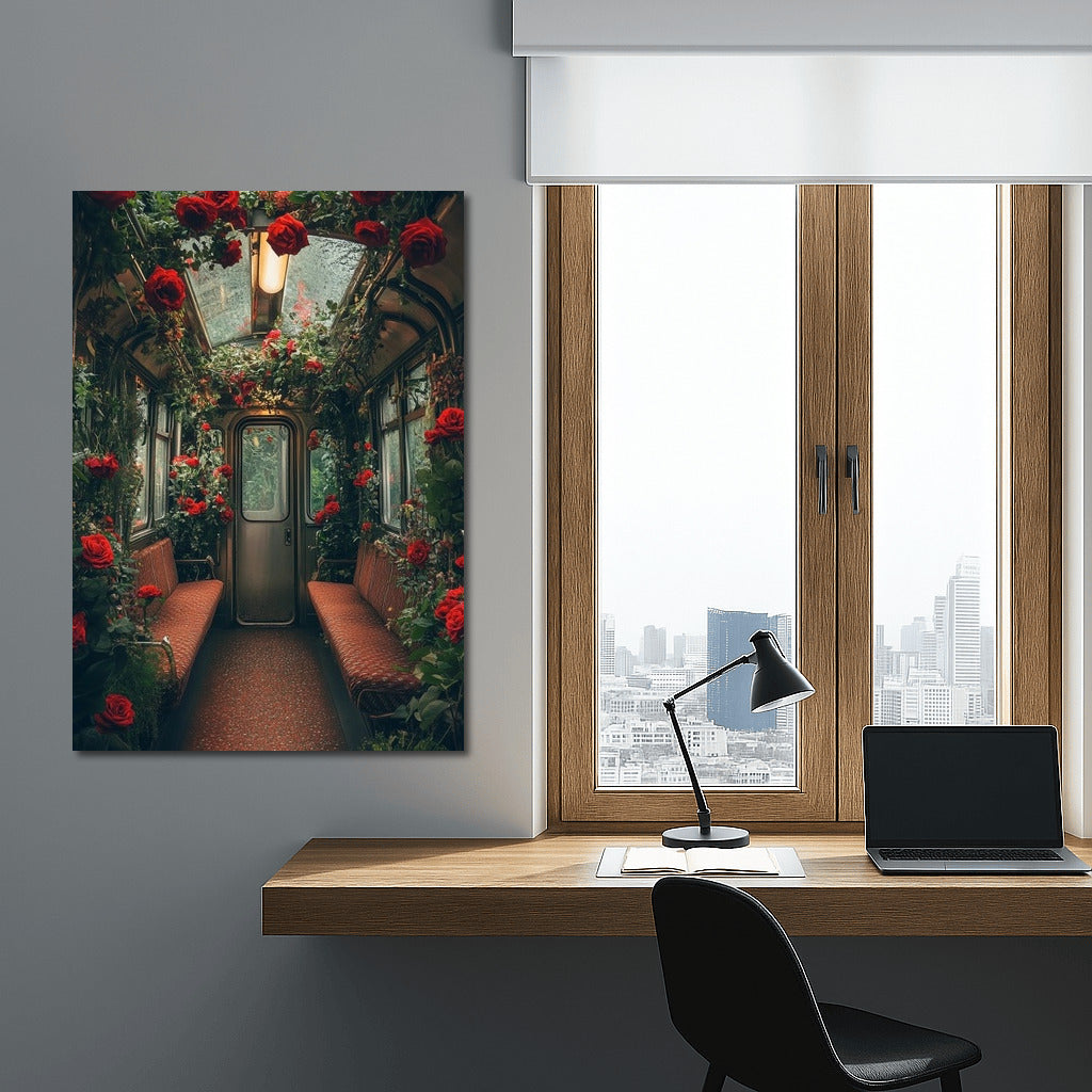 Magic Train with Red Roses: A Poster for Romantics and Dreamers. Dive into the world of wall art and fantasy. See more from the collection: Mixed Wall Art