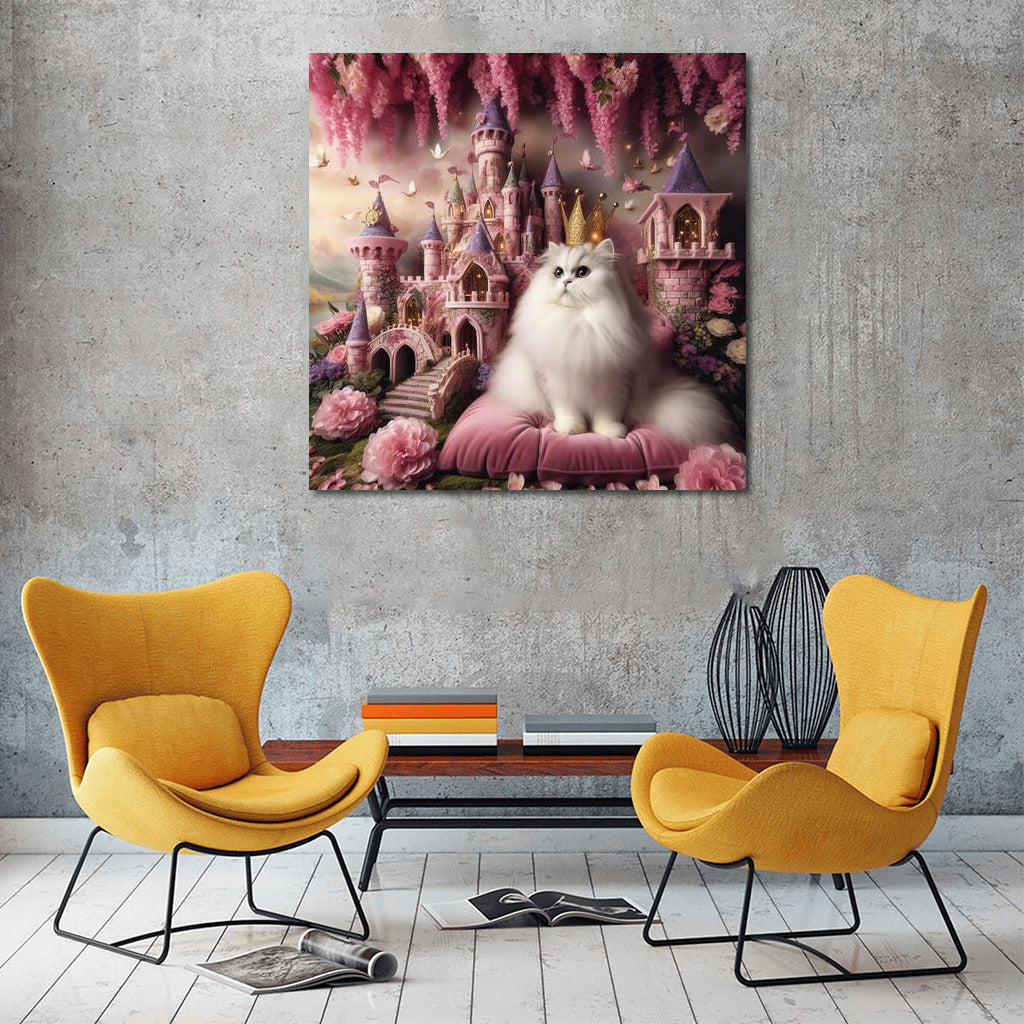 Royal Cat in Fairytale Castle: Furry Fantasy Wall Art