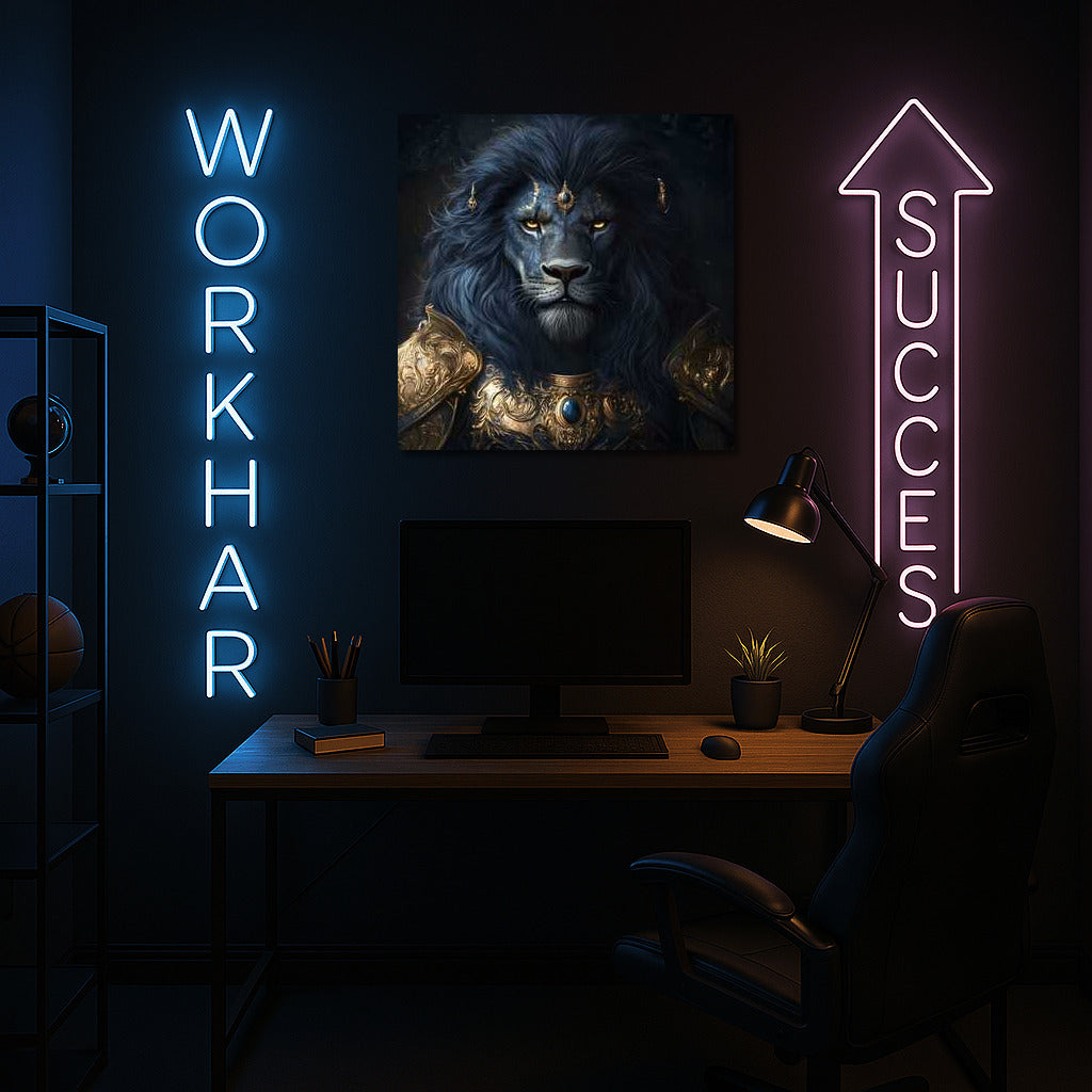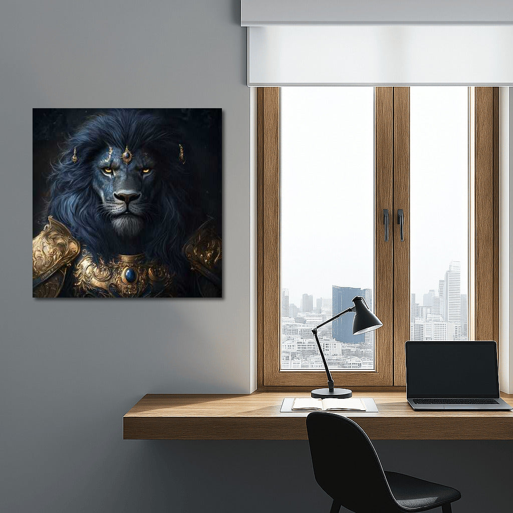 Dive into the world of Fantasy with this impressive painting. A lion in royal armor will decorate your wall art. See more from the collection: Fantasy Art
