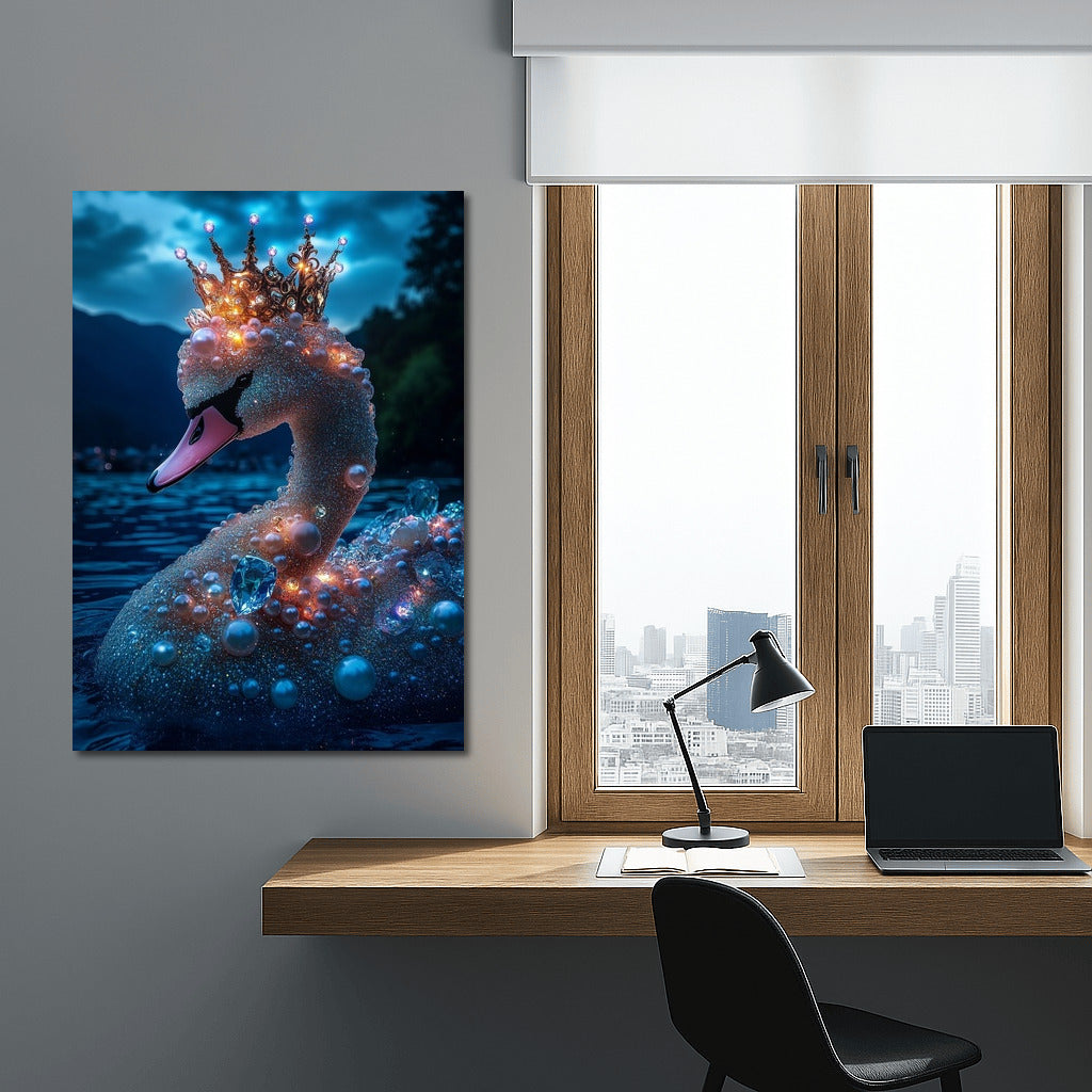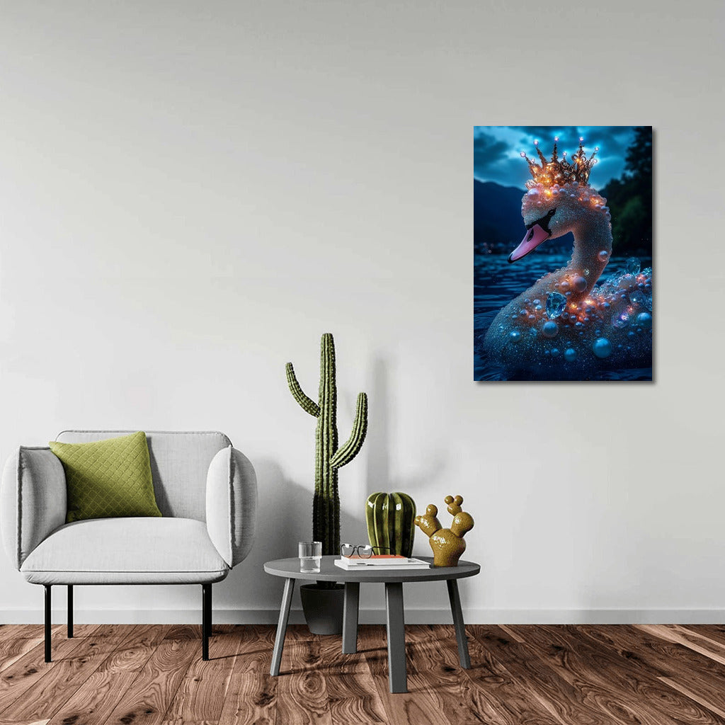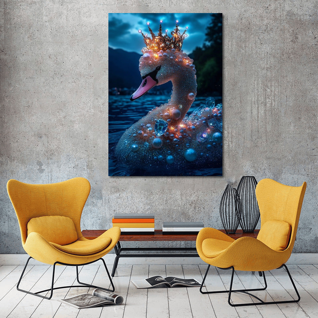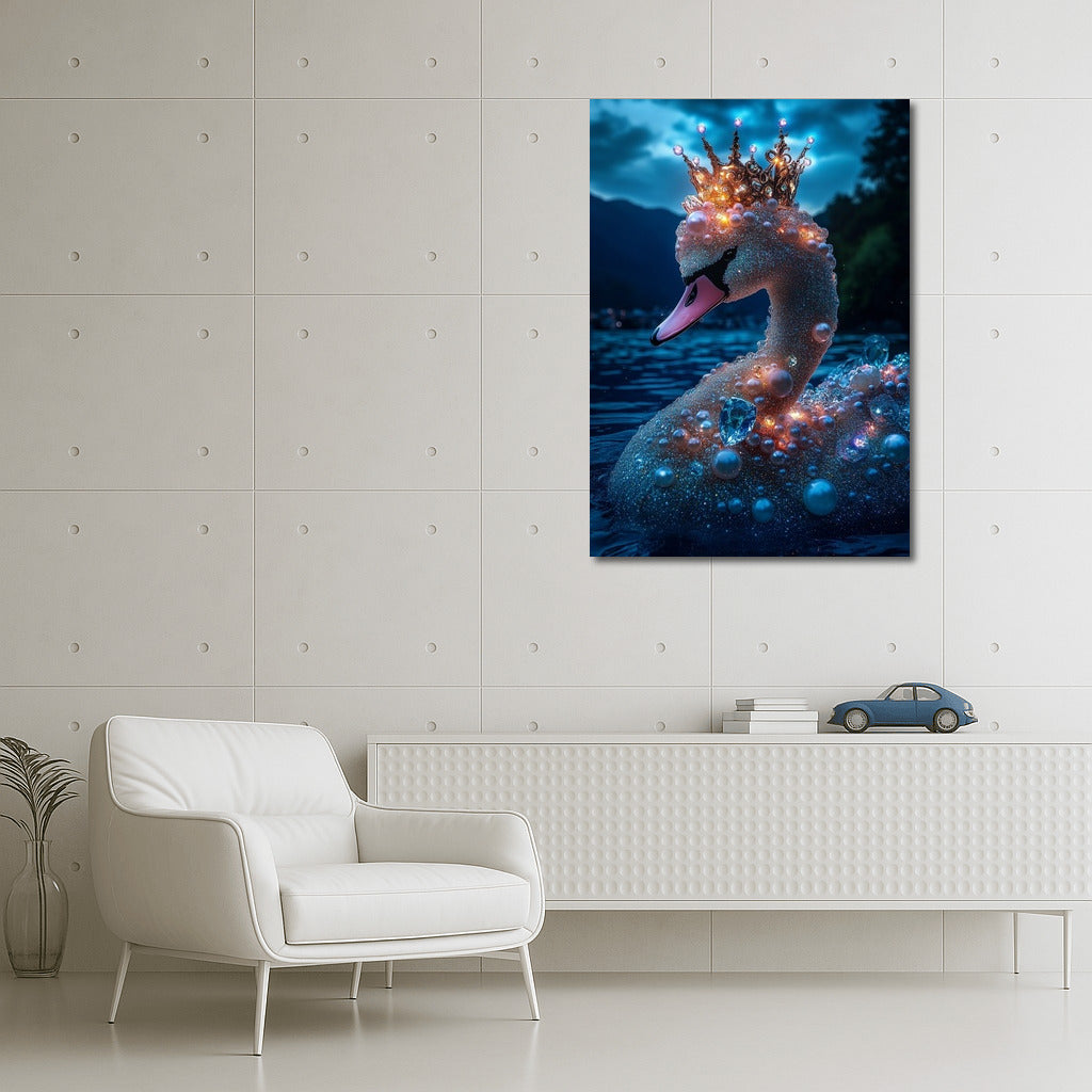 Night Magic: Sparkling Crowned Swan Canvas Poster Add Sophistication to Your Wall Art. See more from the collection: Mixed Wall Art