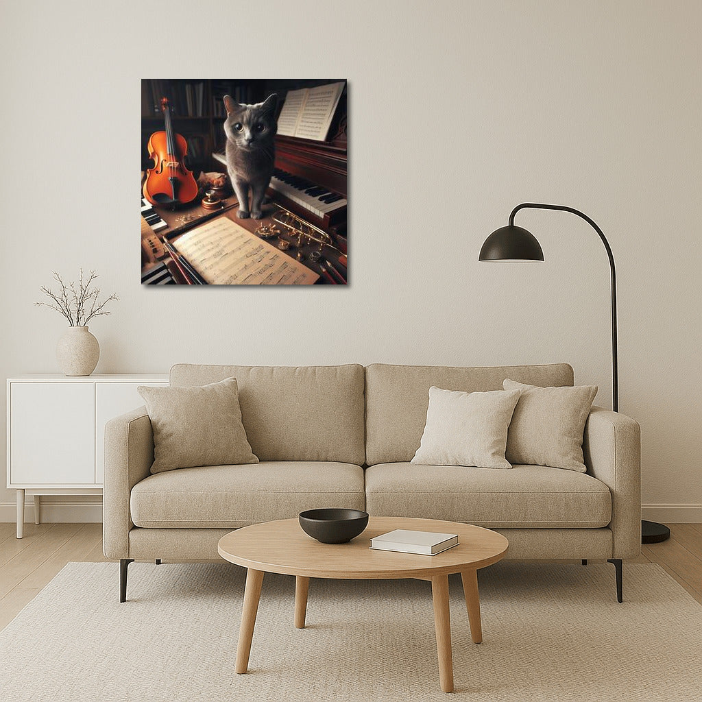 Russian Blue in Music Studio: Melody of Creativity Wall Art