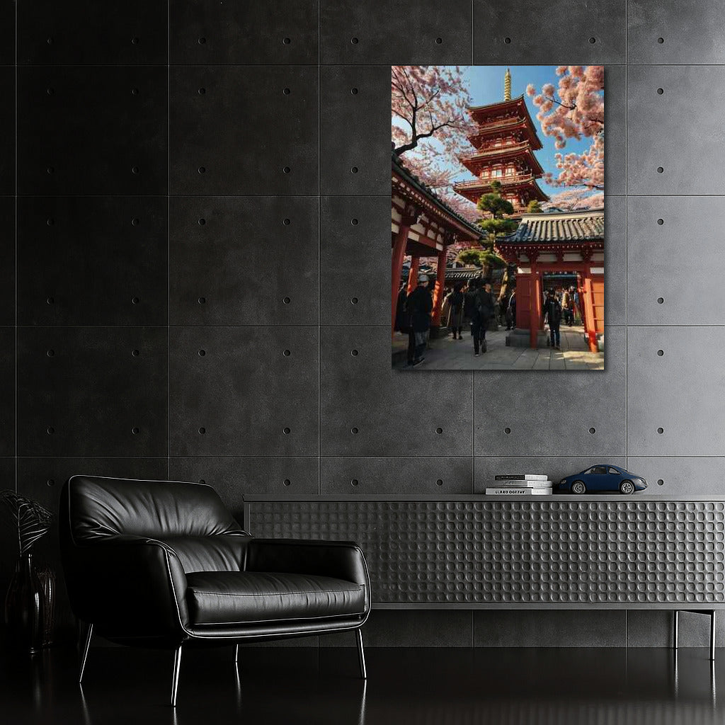 Sakura and Pagoda: Japanese Idyll Wall Art
