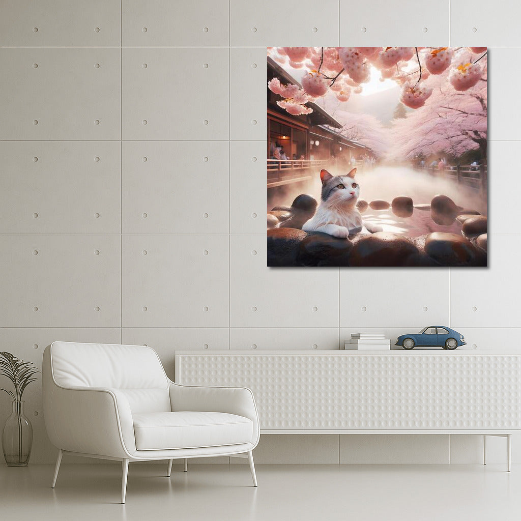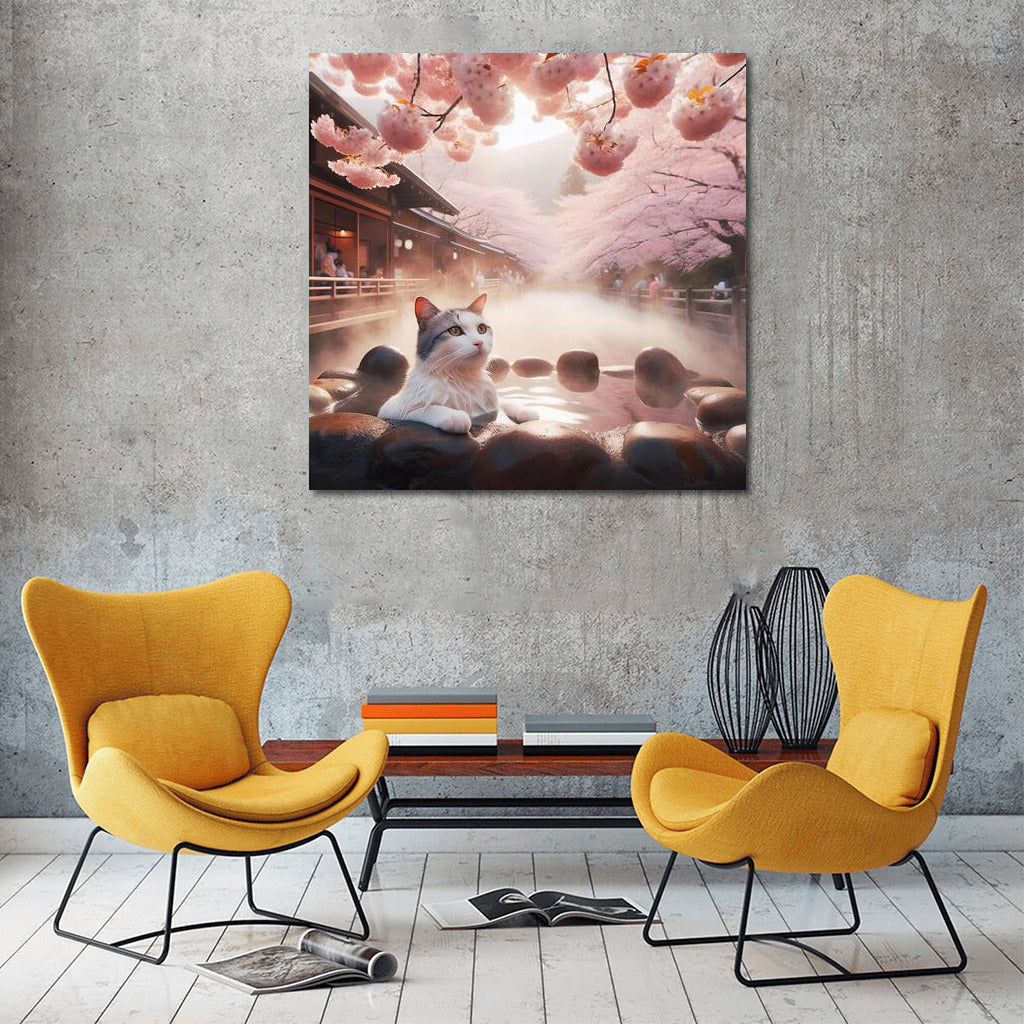 Sakura Zen: Cat in the Hot Waters of Japan Wall Art