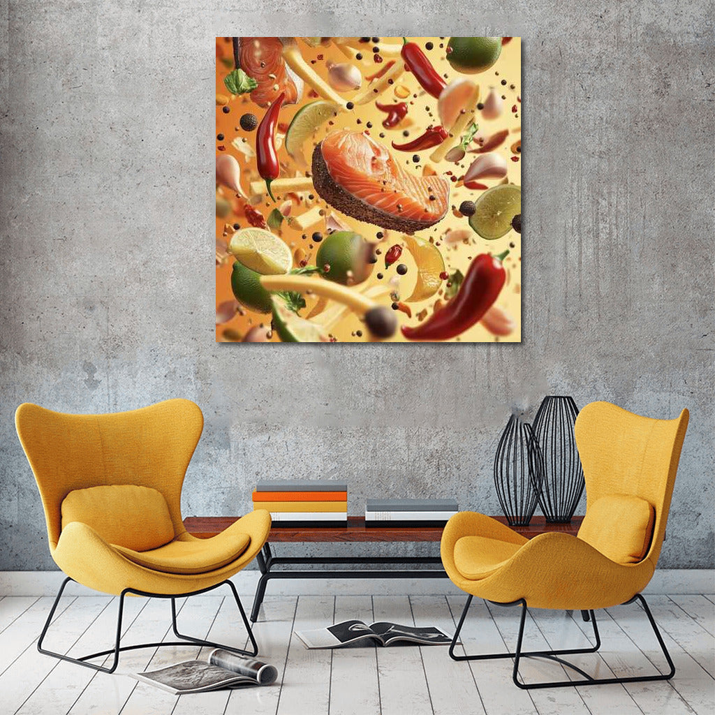 Salmon and Lime Dance: A Culinary Spicy Whirlwind Wall Art