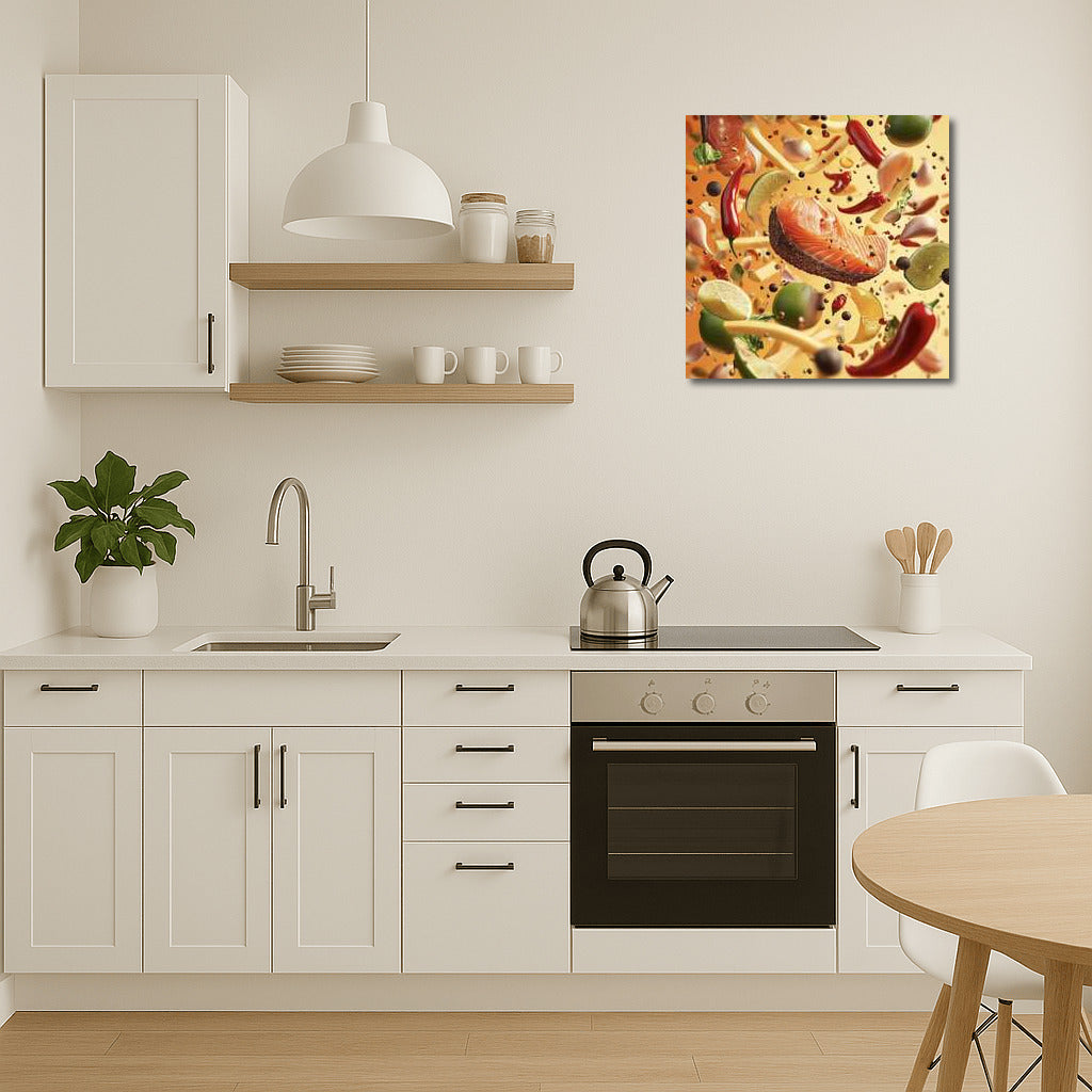 Work up an appetite with this poster of salmon and lime dancing in a swirl of spices, turning your wall into culinary art. See more from the collection: Food Art