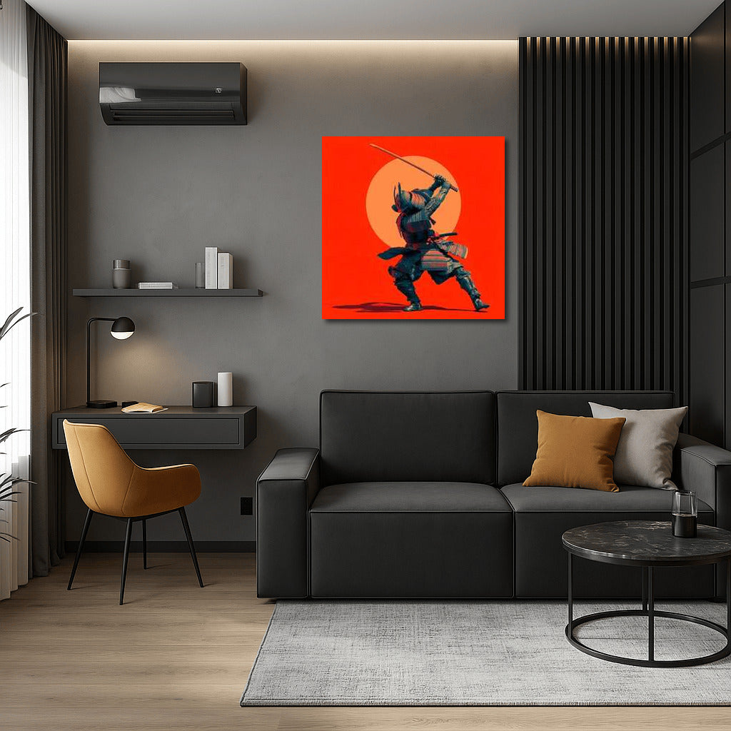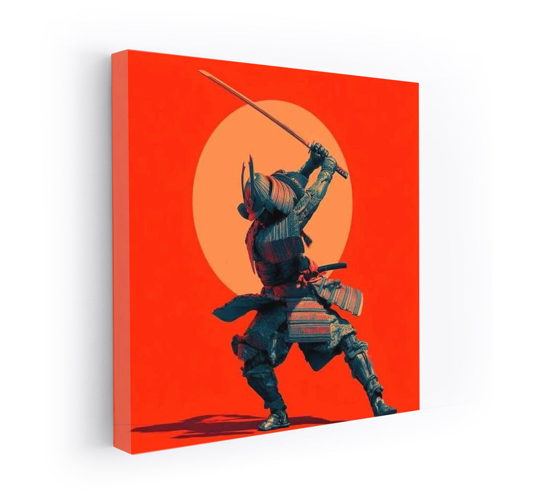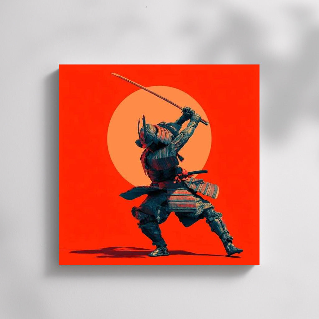 Dynamic samurai against the backdrop of a scarlet sun. Wall art that brings to life the tradition and power of oriental culture. See more from the collection: Samurai Art