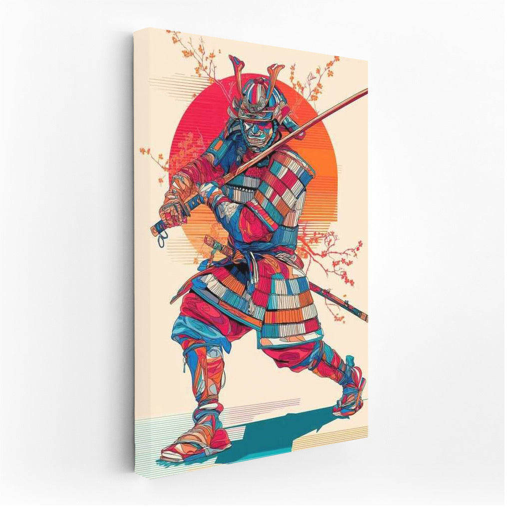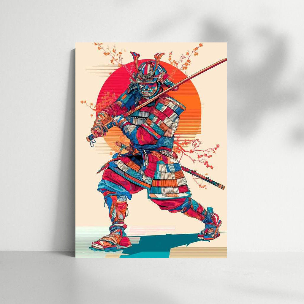 Samurai in bright armor against the rising sun. Wall art that will add a spirit of valor to your interior. See more from the collection: Samurai Art