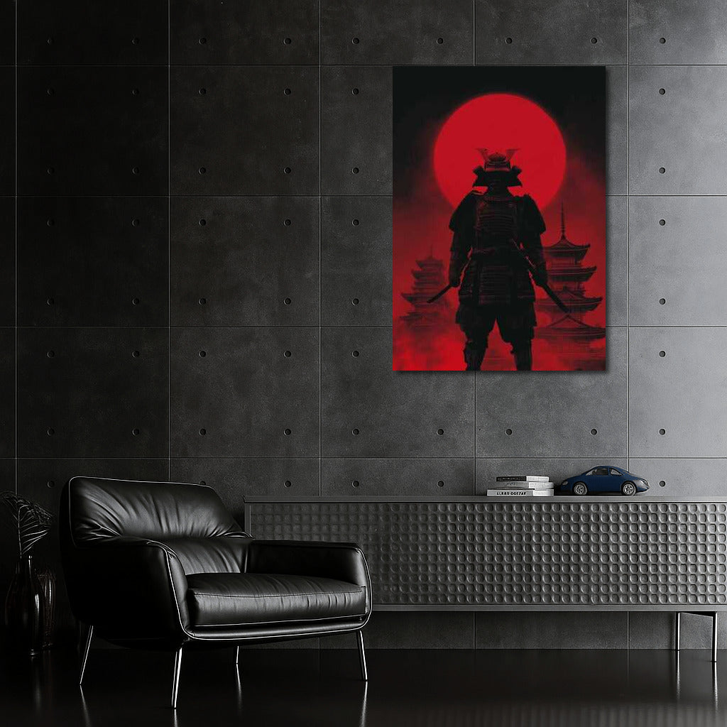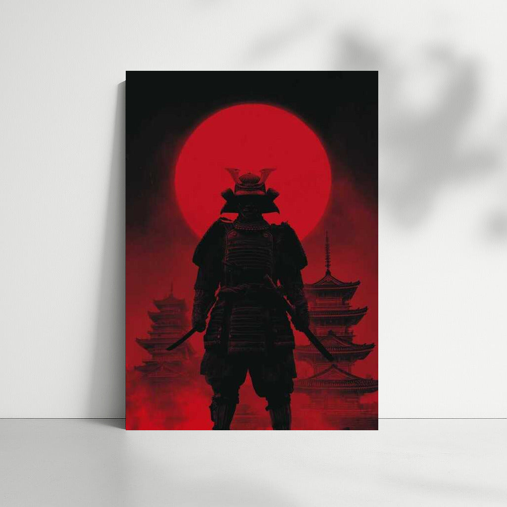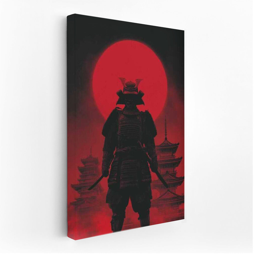 Silhouette of a samurai against the background of a red moon and pagodas. The painting will enliven the walls with the spirit of ancient Japan and the strength of a warrior. See more from the collection: Samurai Art