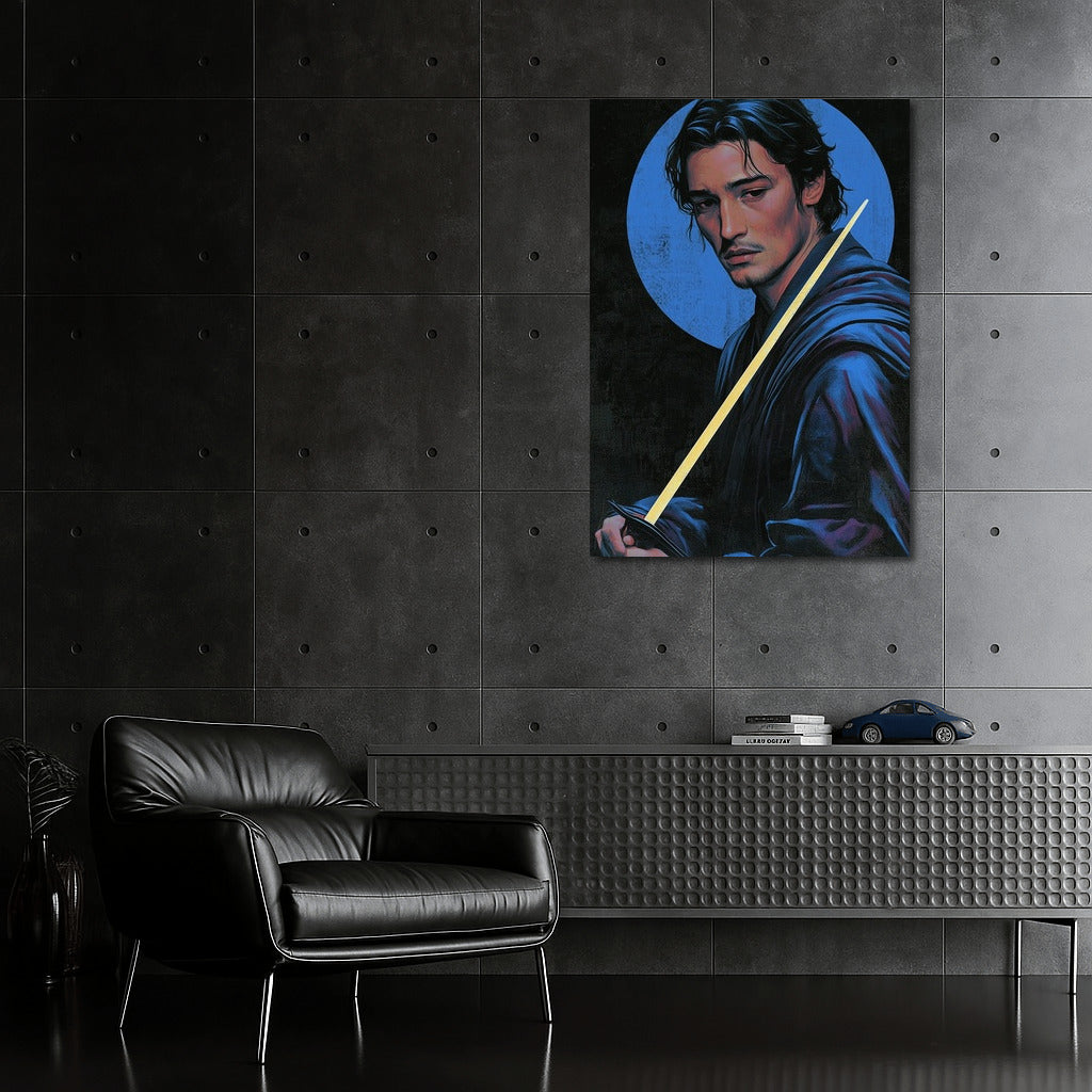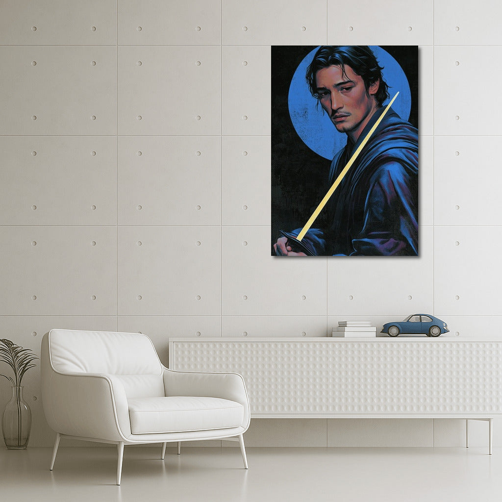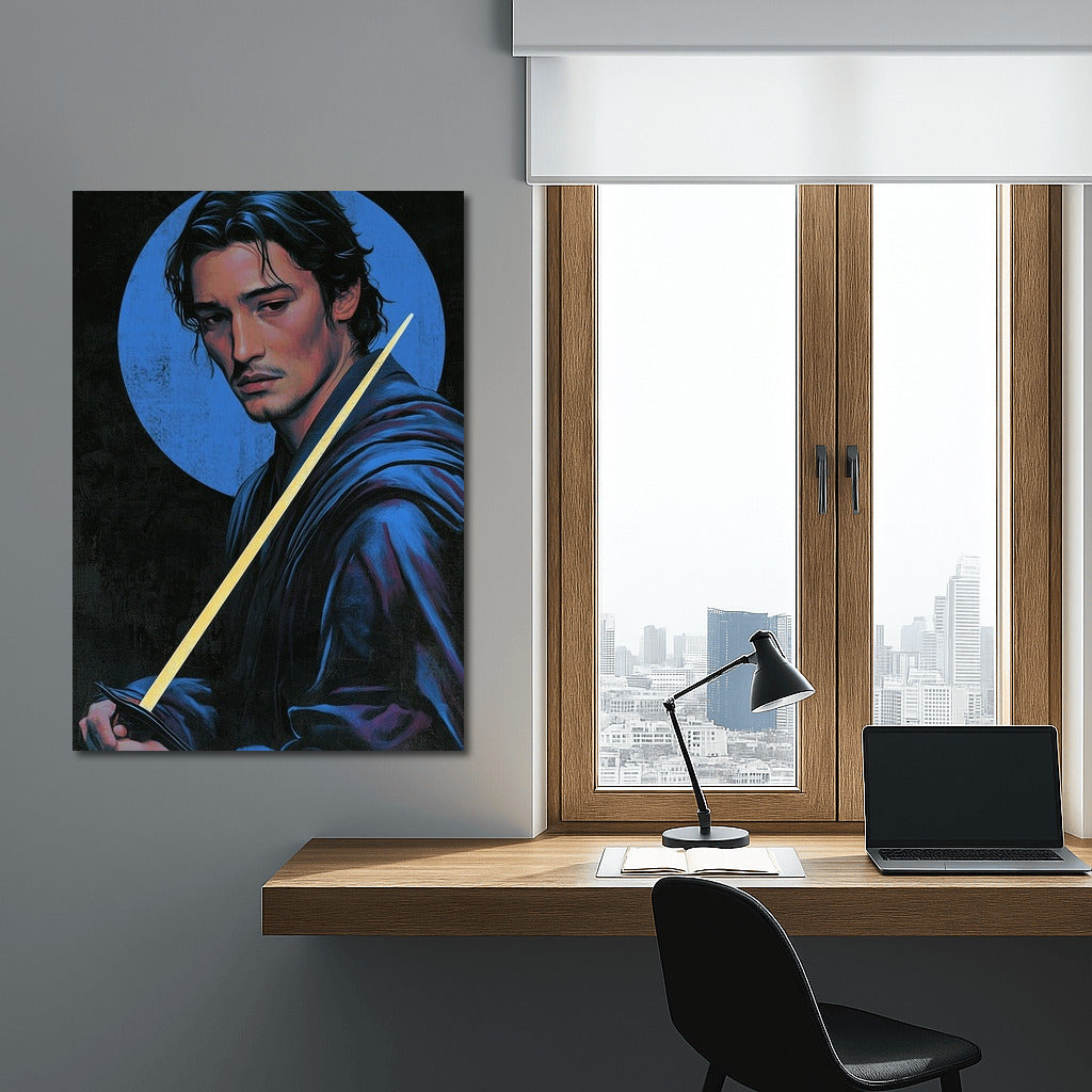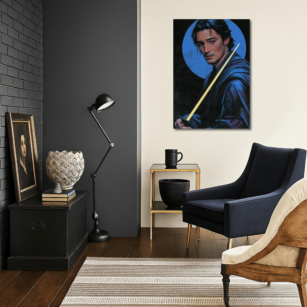 A mysterious warrior in blue shimmers in this poster. Wall art that sparks imagination and stories. See more from the collection: Mixed Wall Art