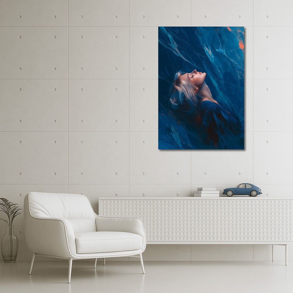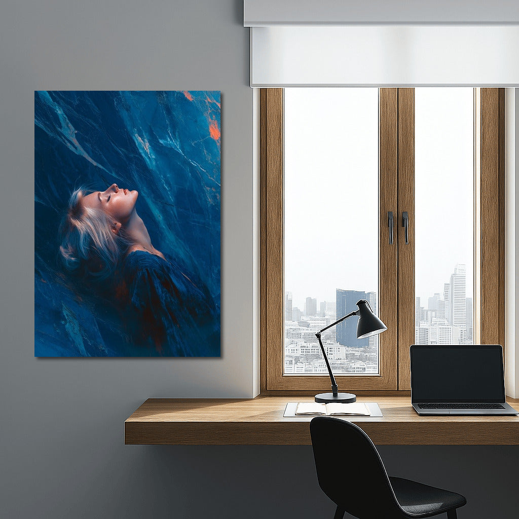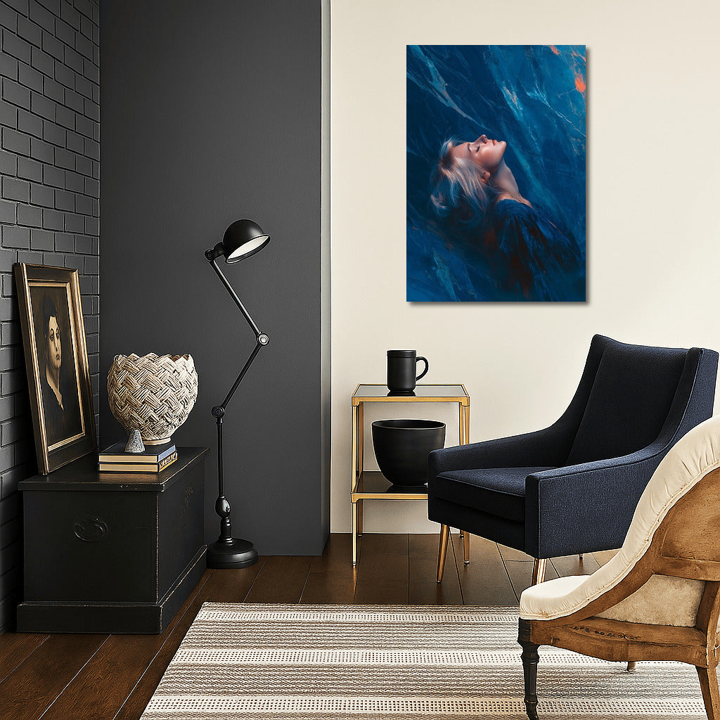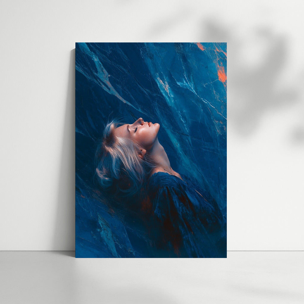Dive into a dream world with a poster where the facets of blue create a magical atmosphere around a mysterious image. Dream wall art. See more from the collection: Wall Art with Women