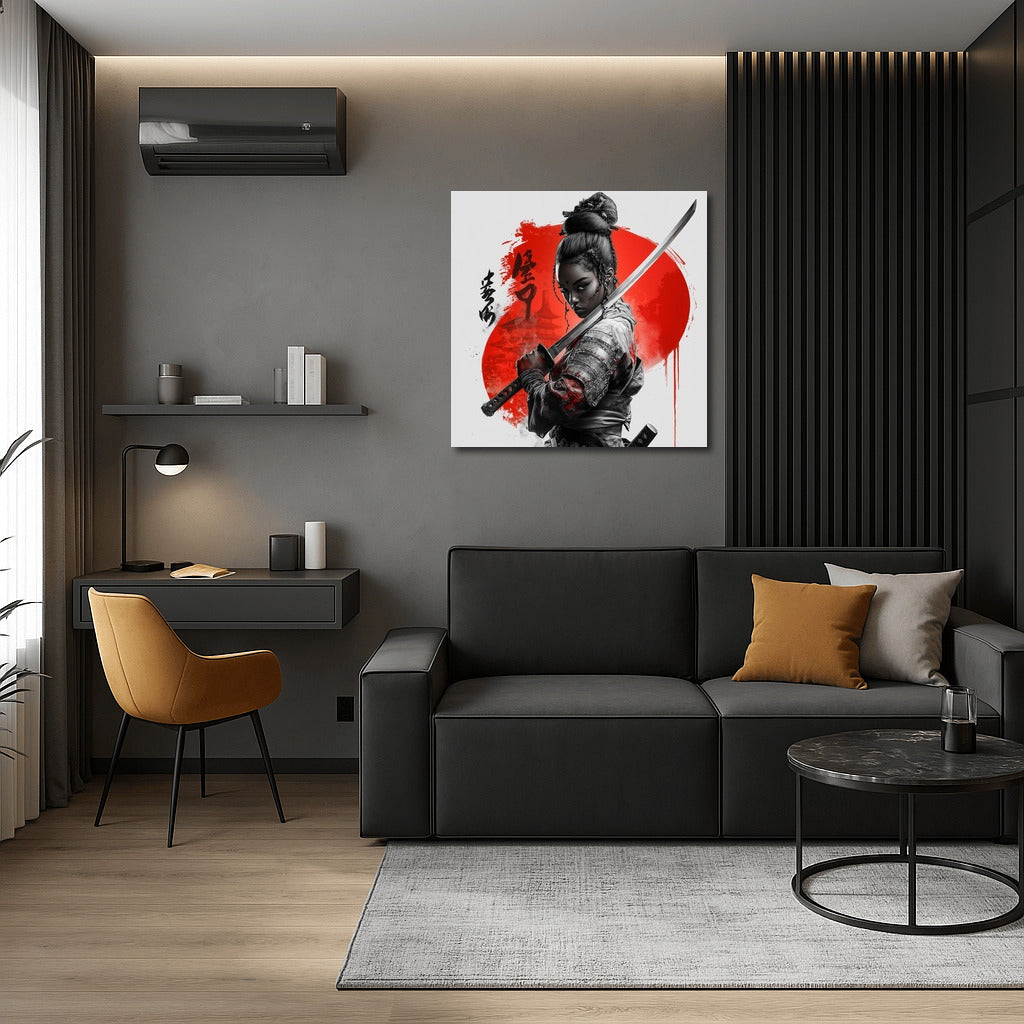 Inspirational poster: samurai art in bright red tones. The dynamics and power of oriental culture on the wall of your home. See more from the collection: Mixed Wall Art